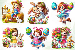 Celebrate with this Easter Girls Clipart Bundle, featuring holiday girl designs, ideal for Easter people crafts.
