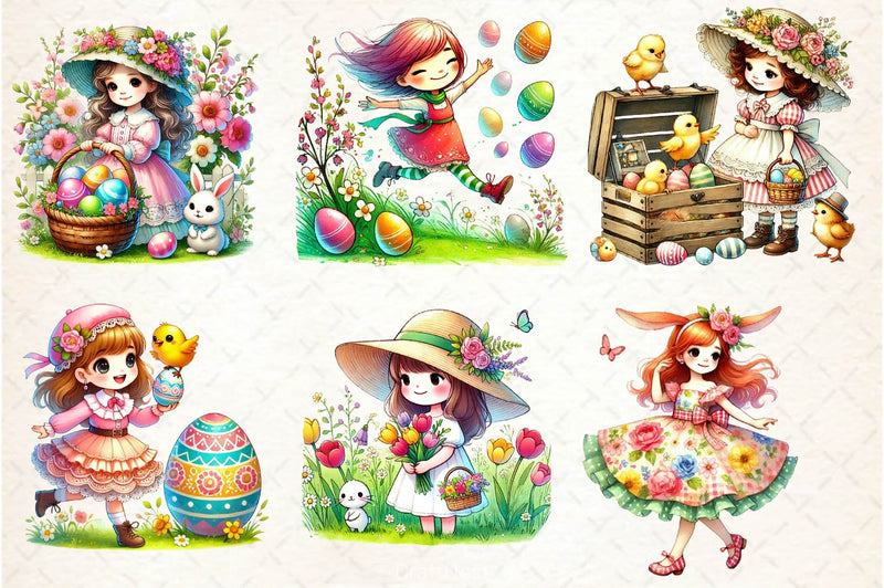 Easter Girls Clipart Bundle 2
