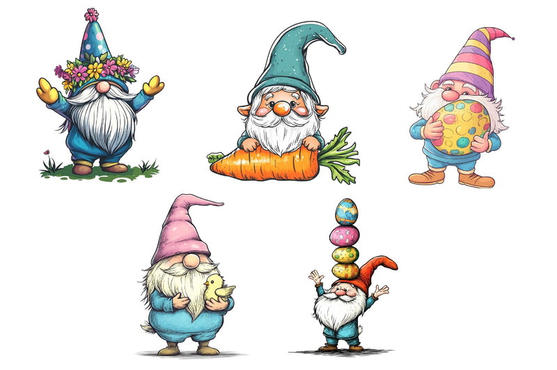 Magic with this Easter Gnome Clipart Bundle, featuring Easter gnome designs, ideal for holiday fantasy crafts.