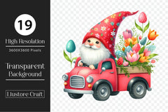 Whimsical gnomes with trucks celebrating Easter for magical spring projects.