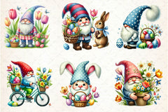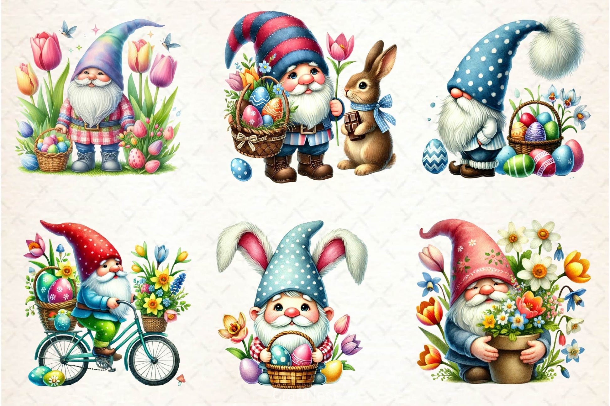 Whimsical gnomes celebrating Easter for magical spring projects.