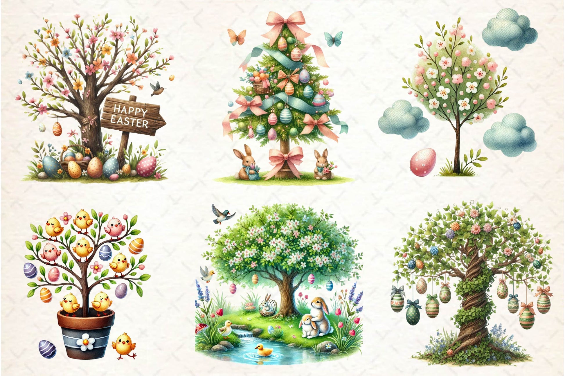 Easter Tree Clipart Bundle