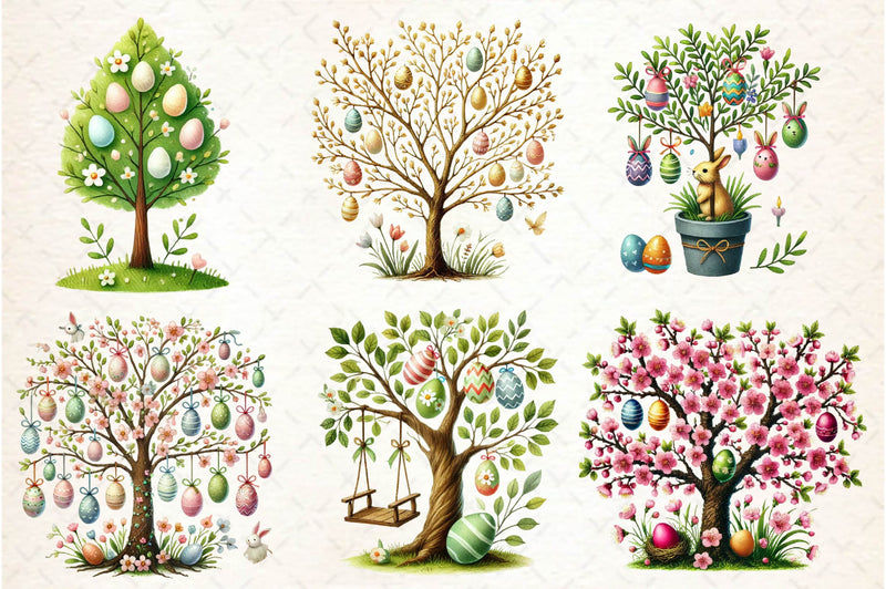 Grow with this Easter Tree Clipart Bundle, featuring festive Easter tree designs, ideal for holiday nature crafts.