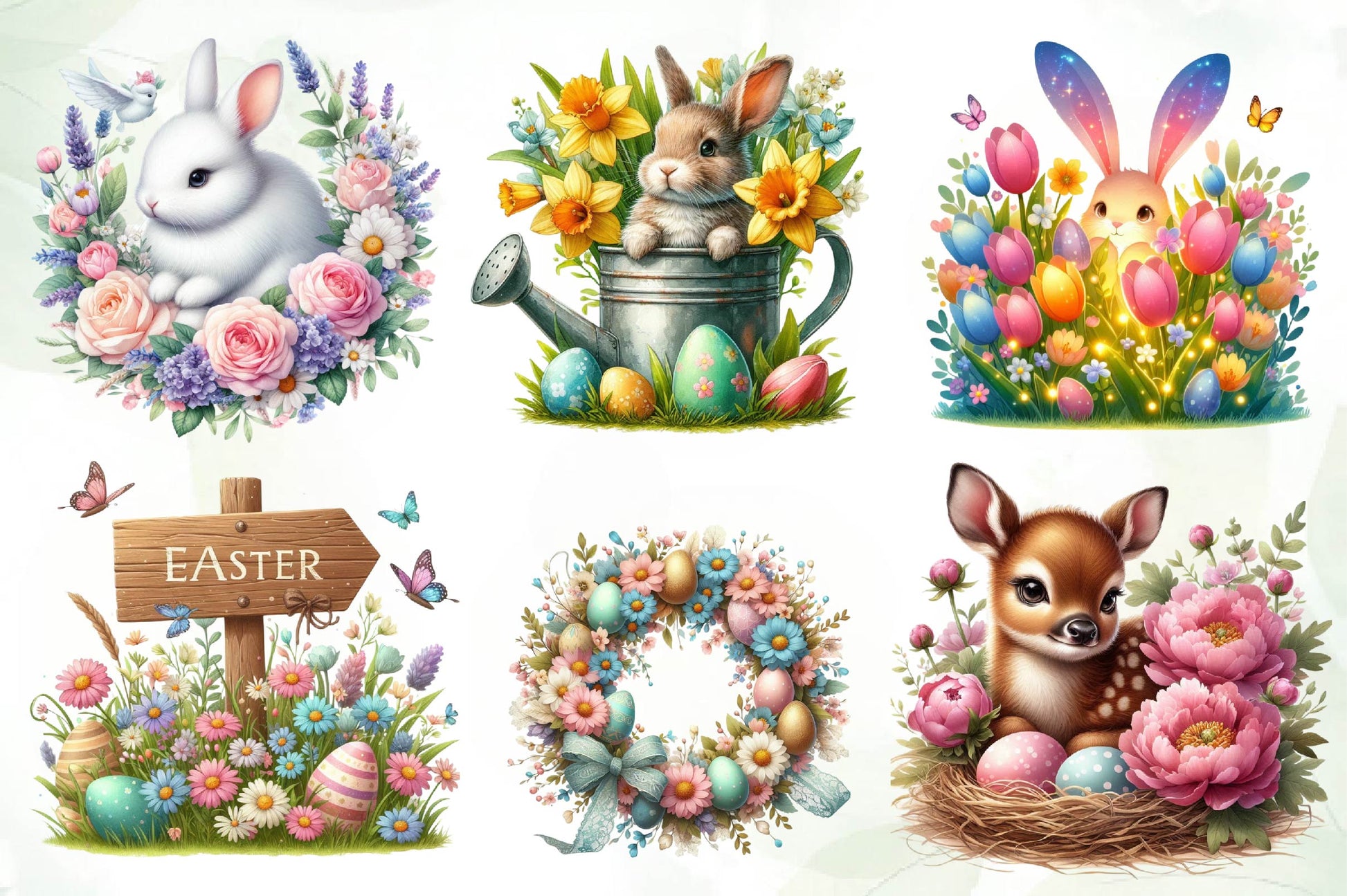Bloom with this Easter With Spring Flowers Clipart Bundle, featuring floral Easter designs, ideal for seasonal celebration crafts.