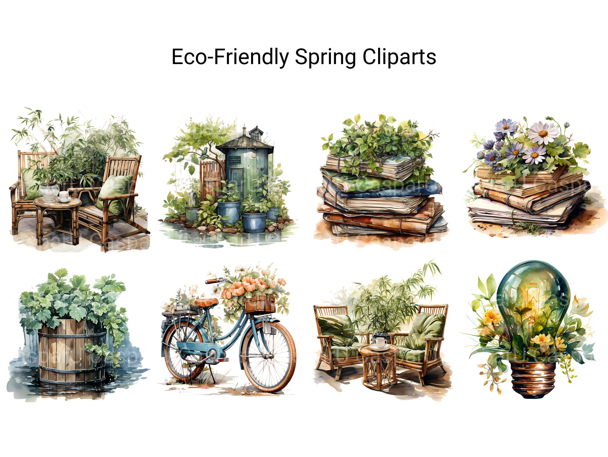 Embrace sustainability and eco-conscious living with Eco-Friendly Spring digital clip art featuring green-themed designs and environmentally friendly motifs. From renewable energy symbols to eco-friendly products, these eco-conscious images capture the importance of environmental stewardship, perfect for promoting sustainability in your spring projects. Let the eco-friendly ethos of Eco-Friendly Spring inspire positive change and encourage viewers to adopt greener habits for a brighter and more sustainable future.