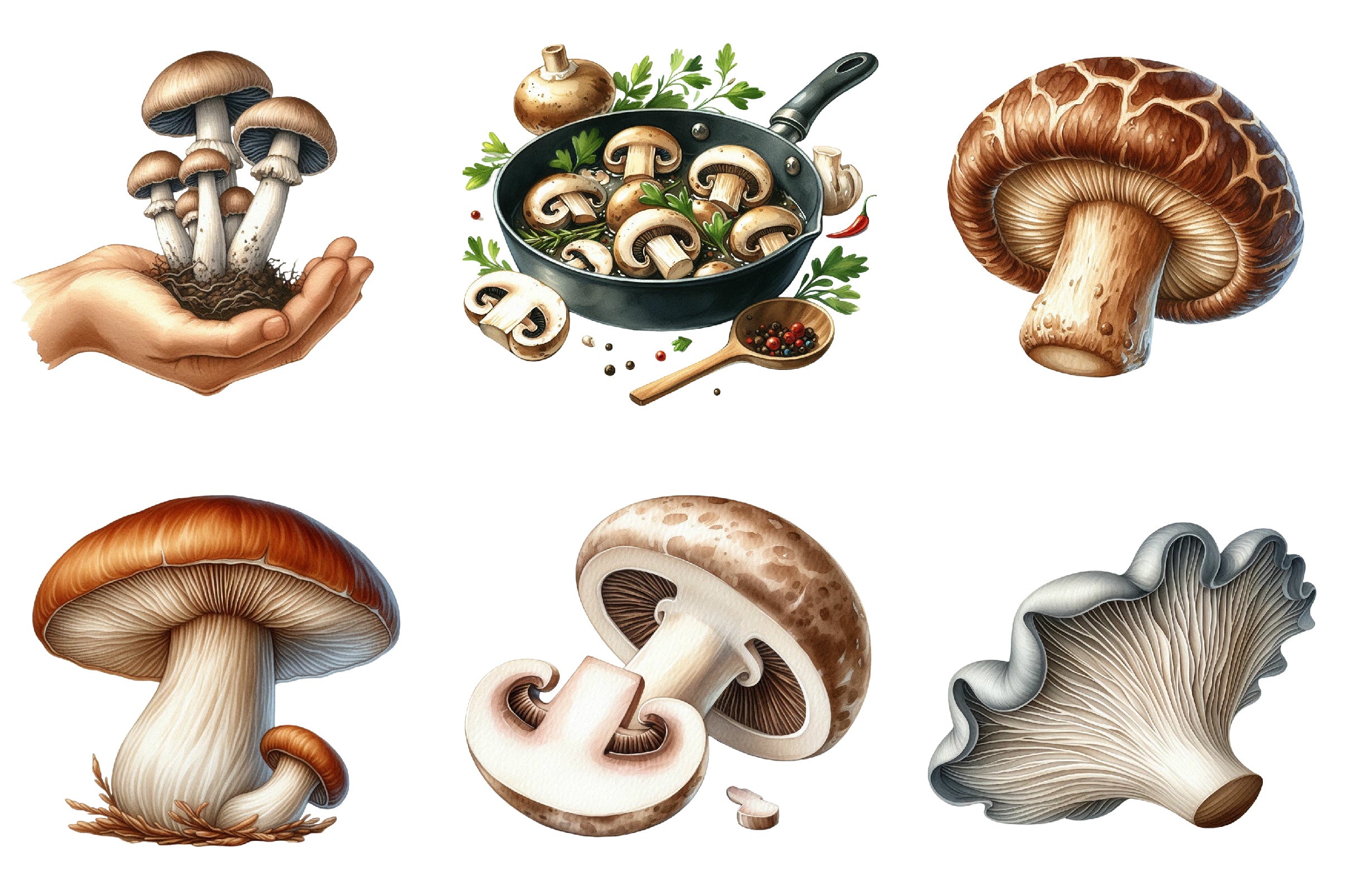 Enhance your creative projects with our Edible Mushroom Clipart Bundle, featuring a diverse collection of vibrant mushroom designs perfect for culinary-themed crafts and digital art. Ideal for food bloggers, graphic designers, and DIY enthusiasts, this bundle offers high-quality, versatile illustrations that bring a touch of nature's charm to your work. Transform your projects with these unique, hand-drawn mushroom graphics, perfect for menus, recipe books, and more.