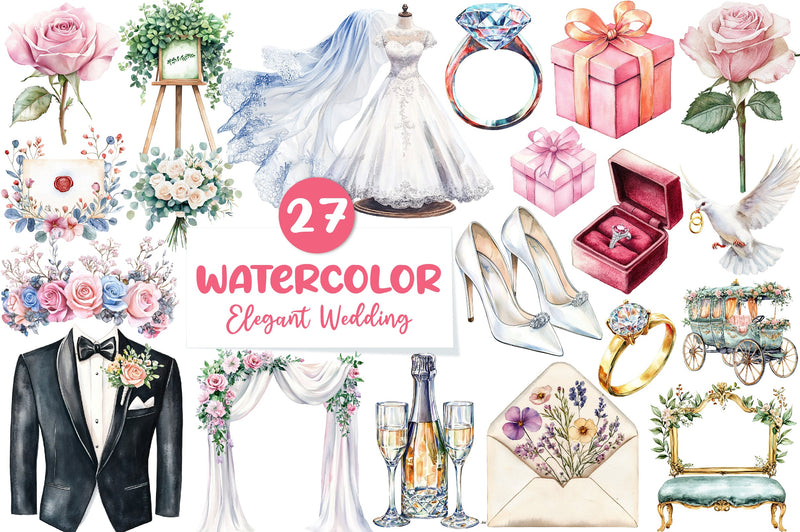 Elegant with this Elegant Wedding Clipart Bundle, featuring elegant wedding designs, ideal for sophisticated bridal crafts.