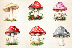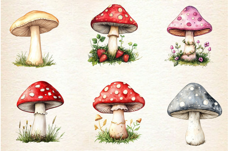 Textile-style embroidered mushroom designs for craft and nature projects.