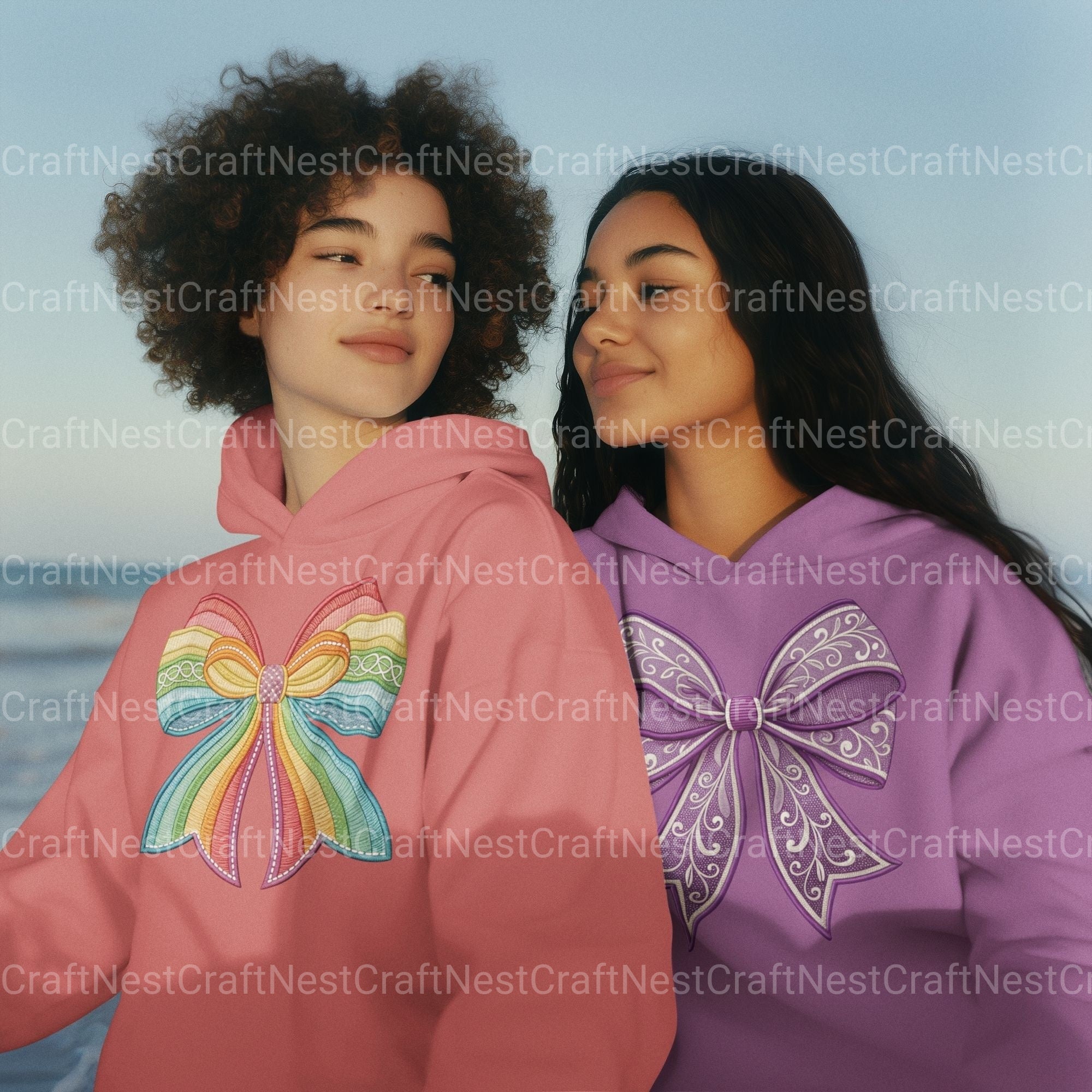 Stitch with this Embroidery Style Bows 15 Clipart Bundle, featuring embroidered bow designs, perfect for crafting fashion crafts.