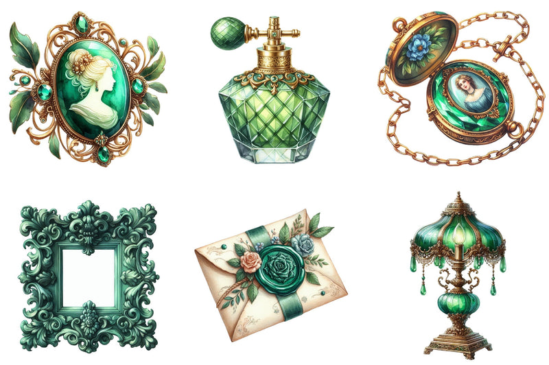 Emerald Victorian Clipart Bundle