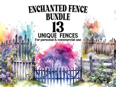 Step into a world of whimsy with our Enchanted Fence clip art. These charming digital illustrations depict fences entwined with ivy, magical flowers, and fairy lights, perfect for adding a touch of magical allure and rustic charm to your designs, whether for garden-themed events, fantasy artwork, or whimsical decor, transforming ordinary boundaries into enchanting gateways to fantastical realms, where the mundane meets the magic of the enchanted.