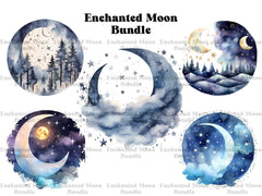 Bask in the celestial glow with our Enchanted Moon clip art. These ethereal digital illustrations feature the moon in various enchanting phases, surrounded by stars, clouds, and mystical motifs, perfect for adding a touch of magic and mystery to your designs, whether for celestial-themed projects, mystical-themed events, or fantasy artwork, evoking the timeless allure of moonlit nights and inviting viewers to lose themselves in the enchanting glow of the moon.