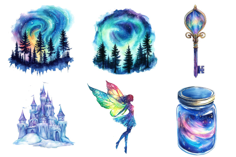 Aurora with this Enchanted Northern Lights Clipart Bundle, featuring magical sky designs, ideal for celestial nature crafts.