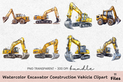 Excavator Construction Vehicle Clipart Bundle