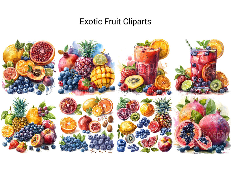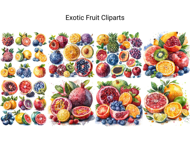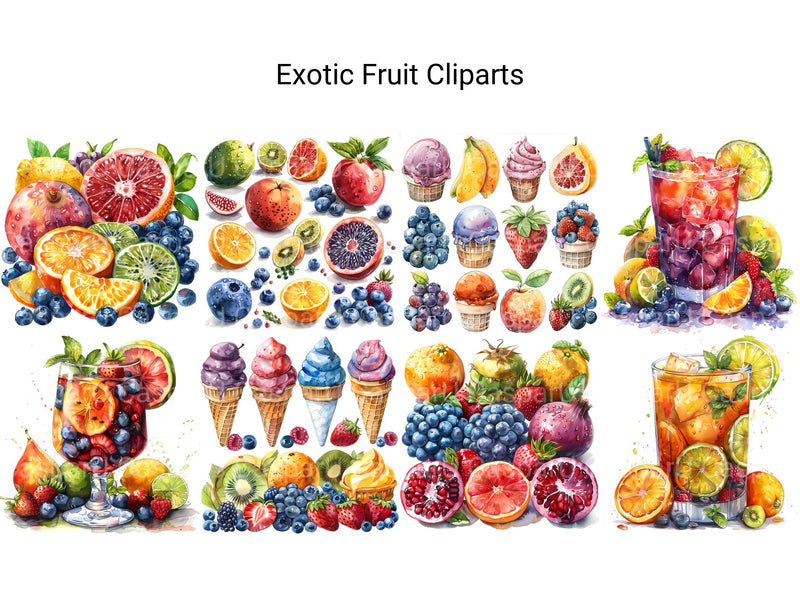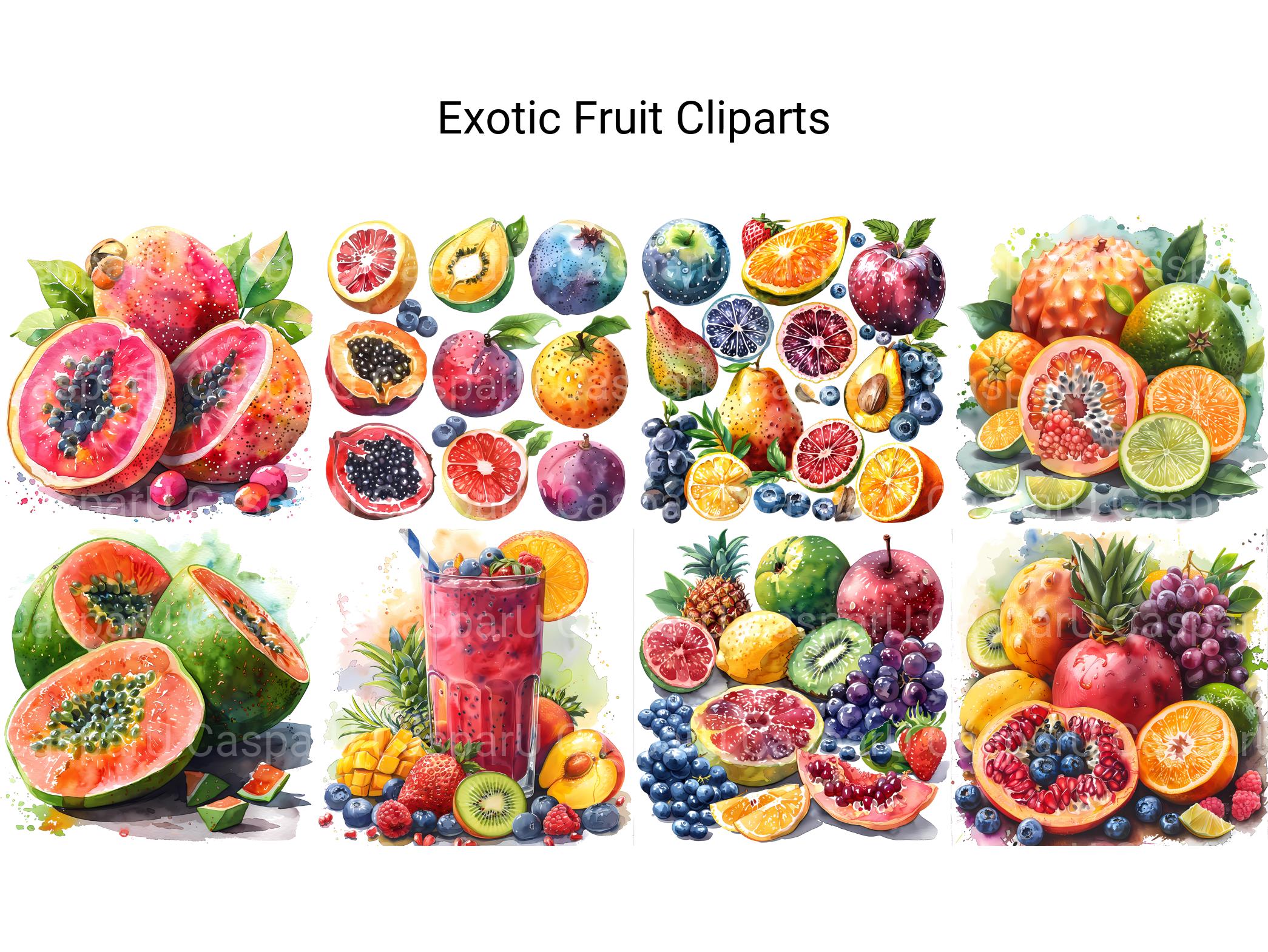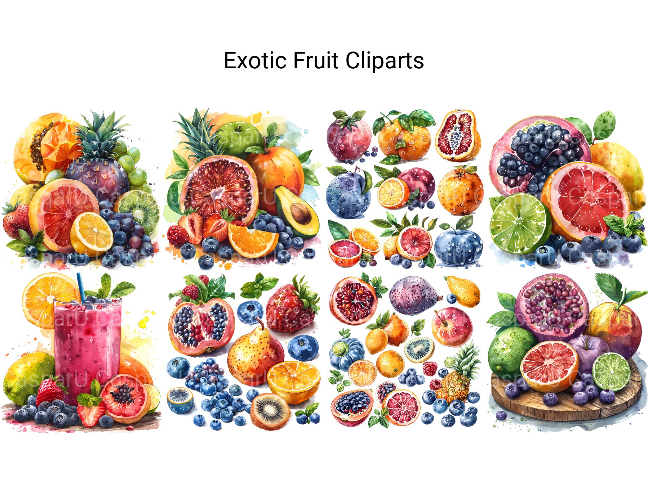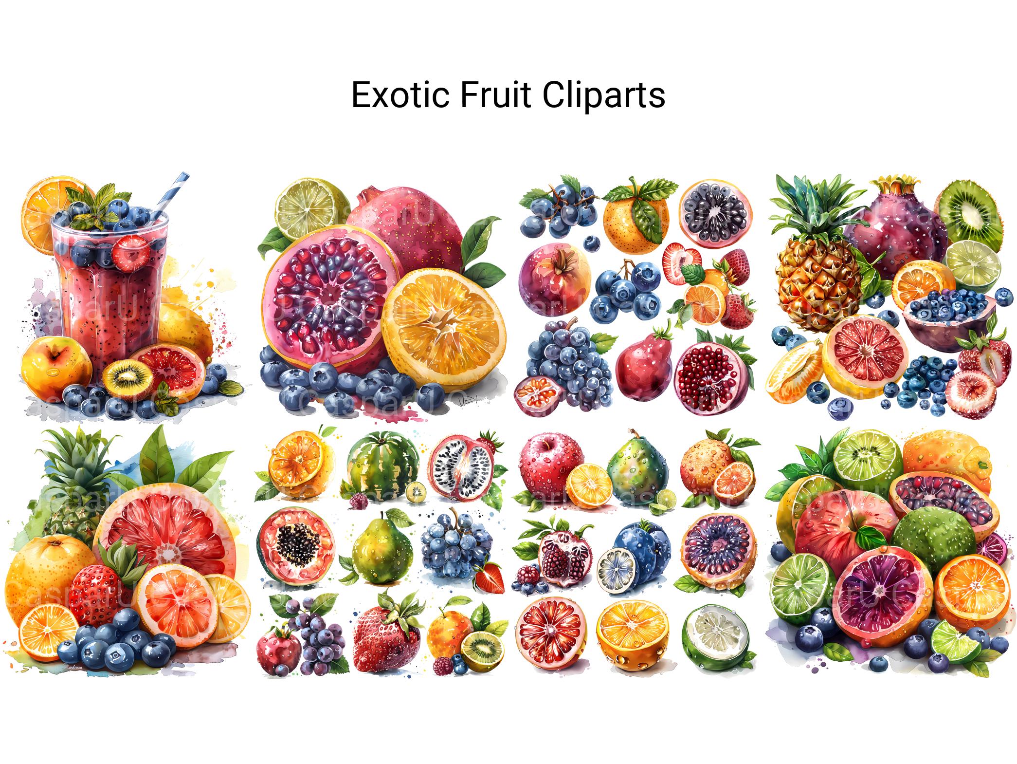 Explore a world of vibrant colors with our Exotic Fruit clipart. This collection features a variety of tropical fruits, such as dragon fruit and kiwi, adding a lively and colorful touch to your designs. Perfect for summer or exotic-themed projects.