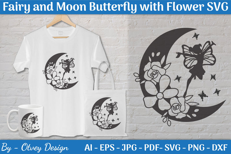 Fairy and Moon Butterfly with Flower SVG Bundle