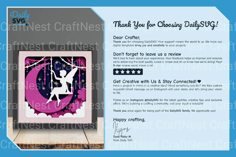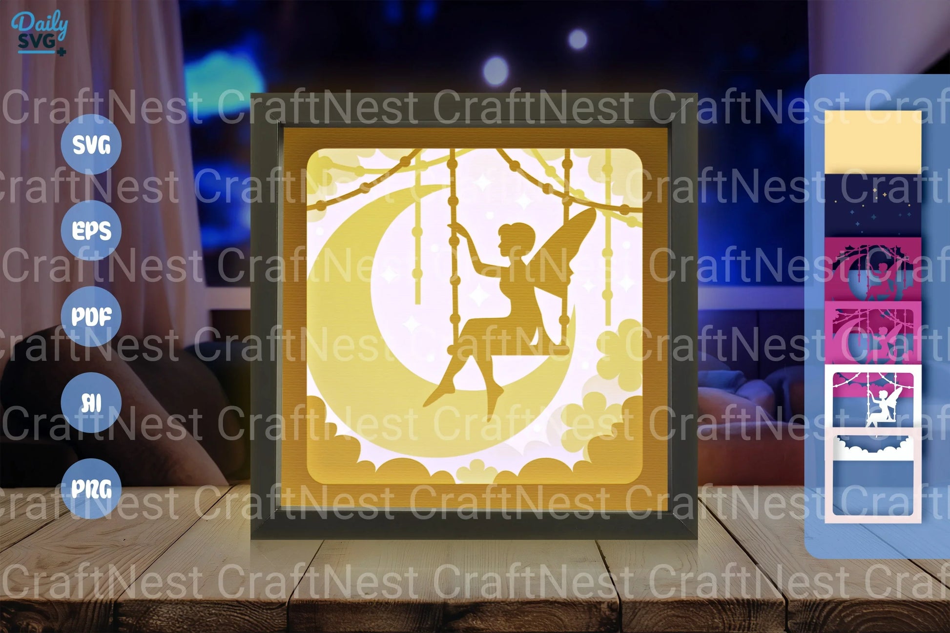 Illuminate your crafts with the Fairy Crescent Moon Papercut SVG Bundle, featuring intricate fairy and moon designs perfect for magical home decor, scrapbooking, and enchanting DIY projects.
