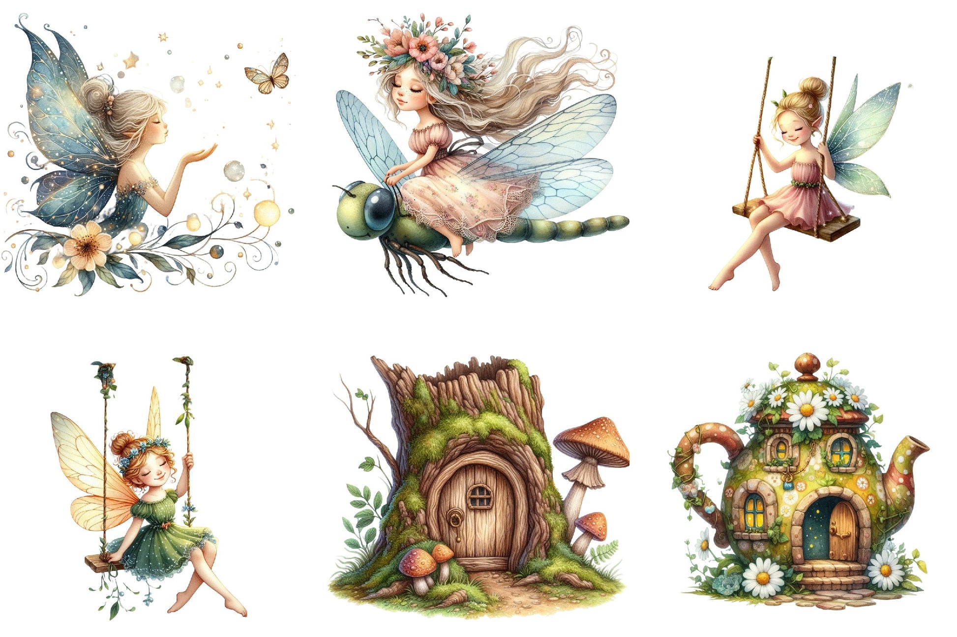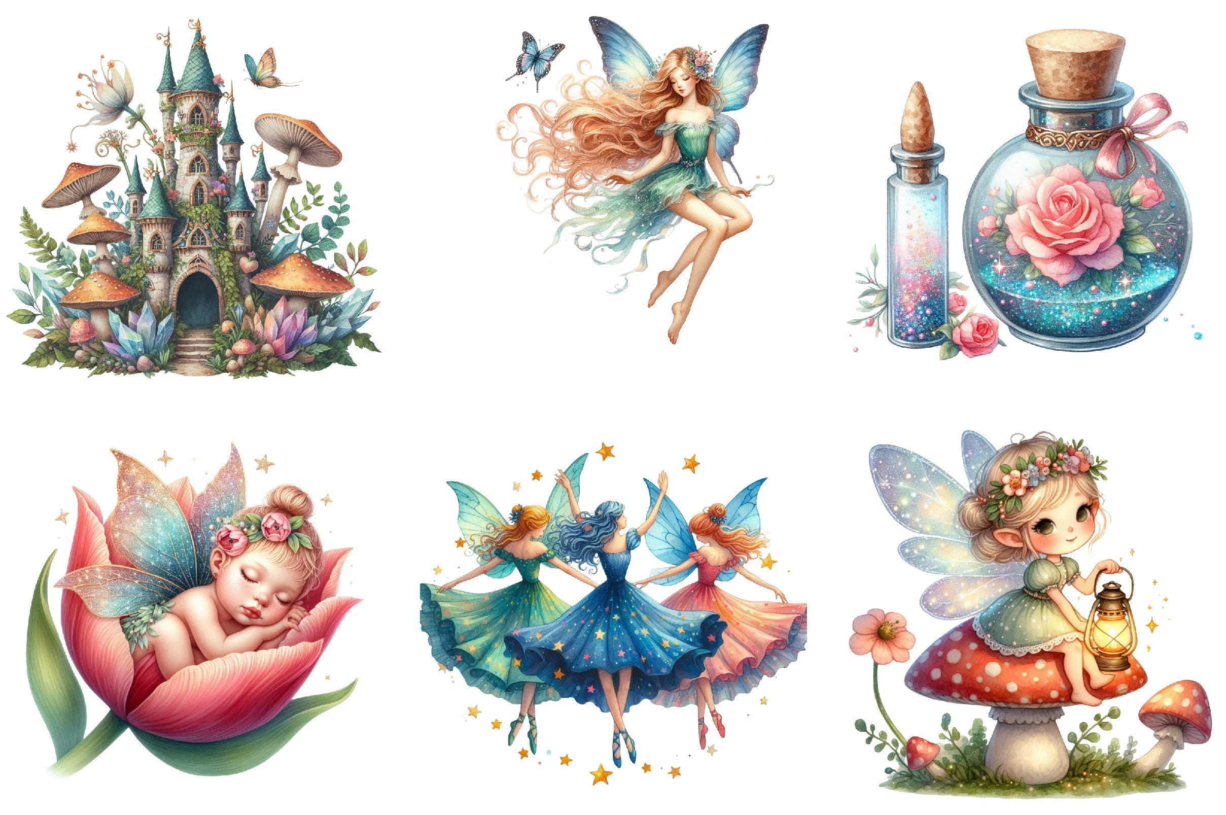 Explore endless possibilities with this versatile fairy clipart set, perfect for DIY crafts, digital designs, and enchanting decor.