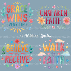 Believe with this Faith Quotes 15 Clipart Bundle, featuring inspirational faith sayings, perfect for Christian quote crafts.