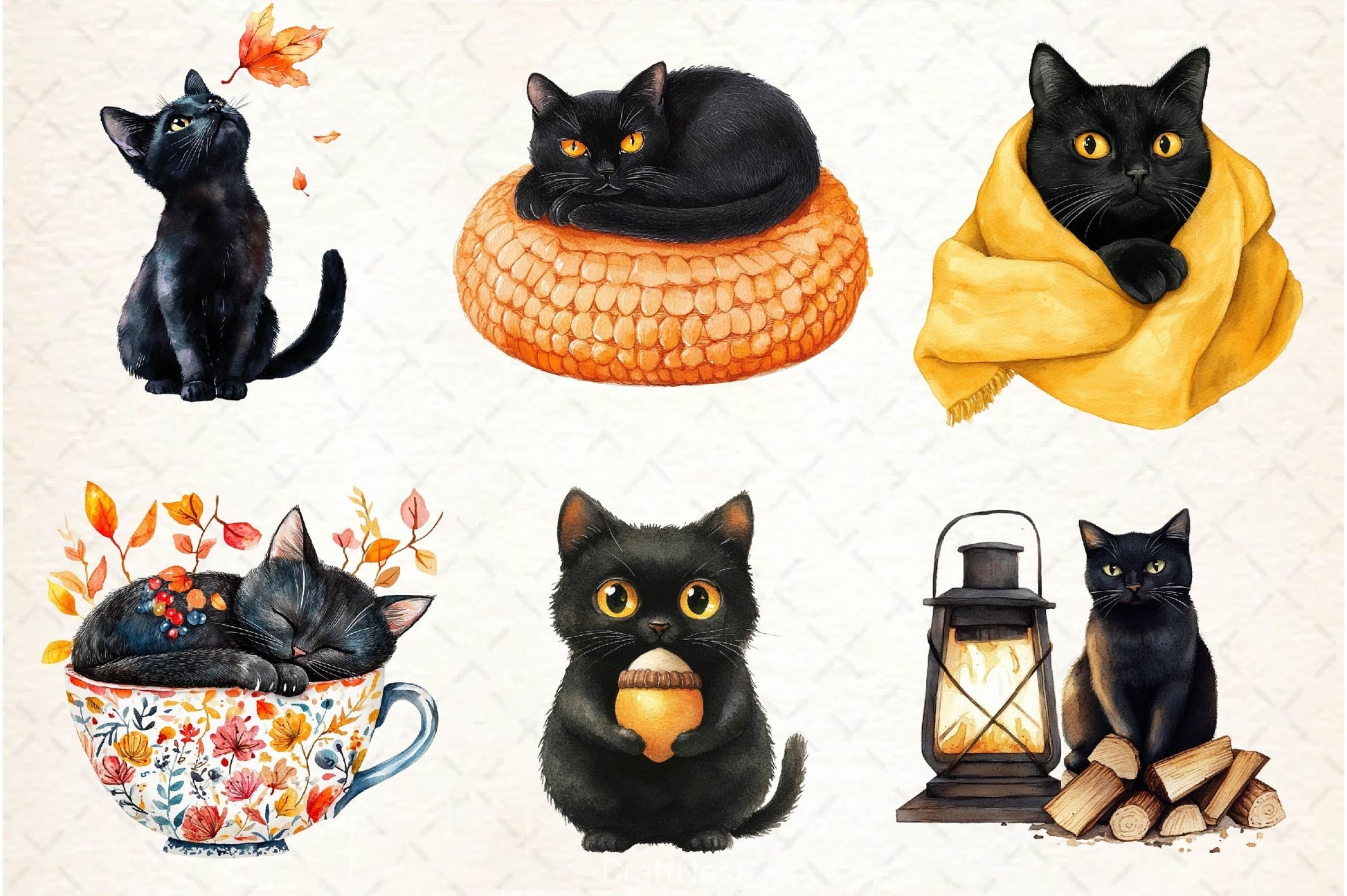 Spooky black cats in autumn settings perfect for Halloween and fall themed crafting.