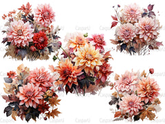 Celebrate the vibrant beauty of fall dahlias with our Fall Dahlias clip art. These digital illustrations showcase the stunning variety of dahlia blooms in autumnal shades, perfect for adding a touch of floral splendor and seasonal charm to your designs, whether for floral-themed artwork, fall decorations, or botanical creations, capturing the captivating allure of fall dahlias in delightful detail.