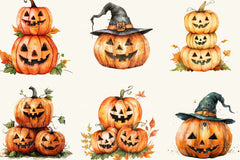 Spook with this Fall Halloween Pumpkins Clipart Bundle, featuring scary pumpkin designs, ideal for Halloween autumn crafts.