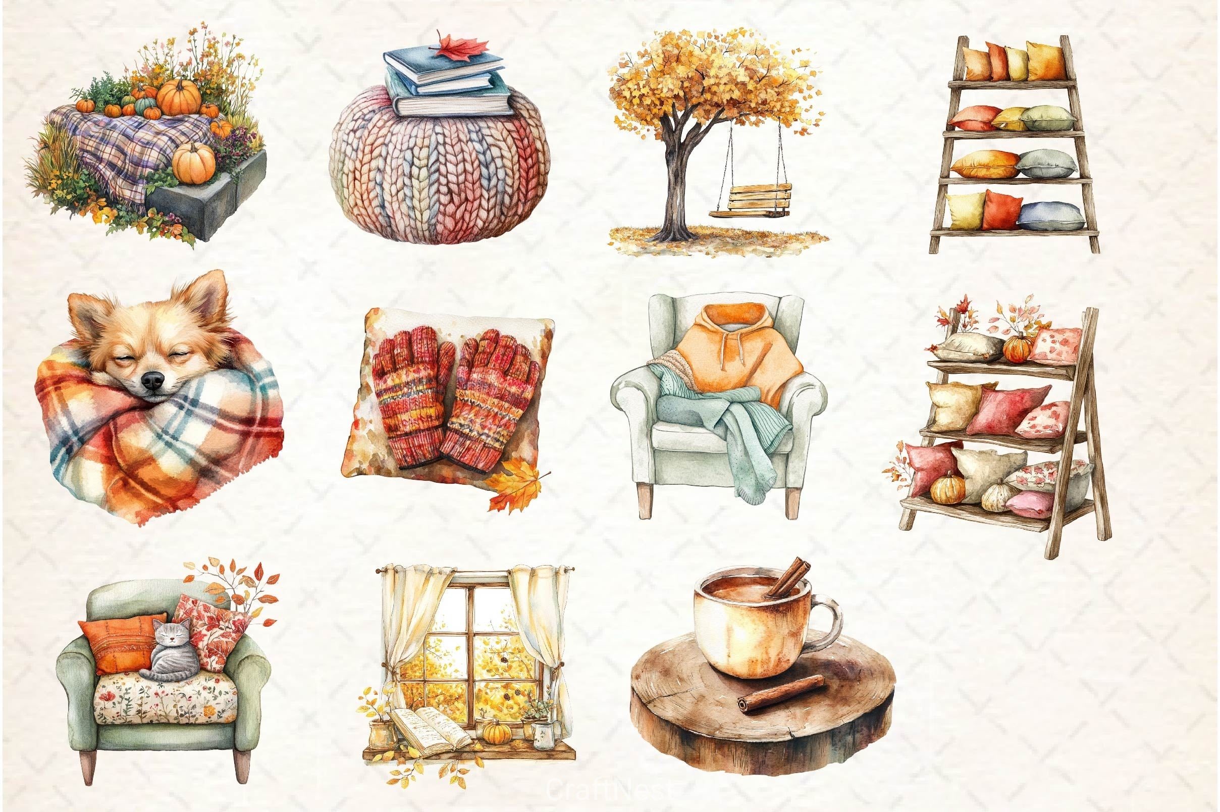 Relaxing fall elements perfect for cozy autumn leisure projects.