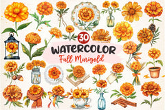 Bloom with this Fall Marigold Clipart Bundle, featuring autumn flower designs, perfect for fall garden crafts.