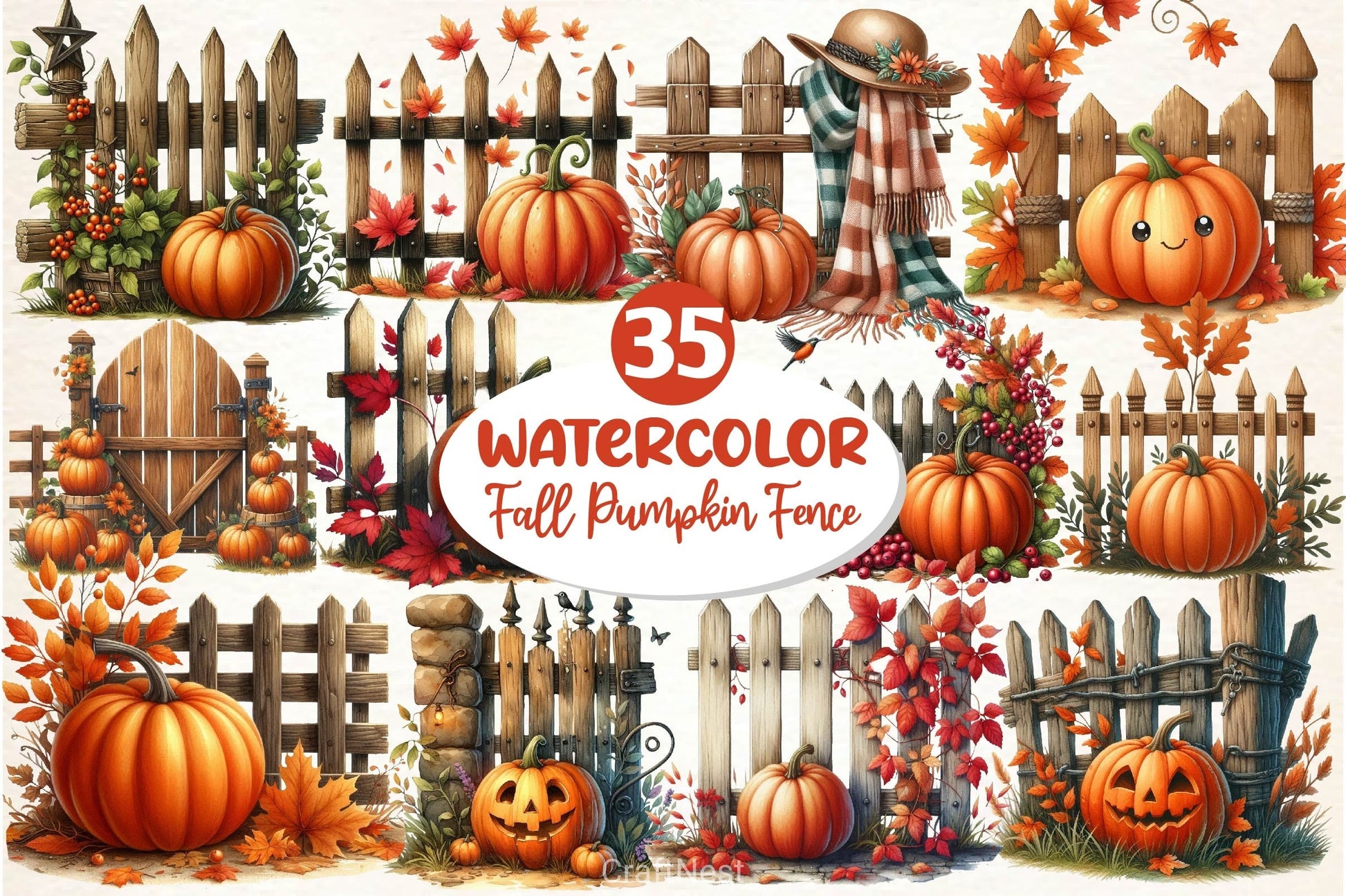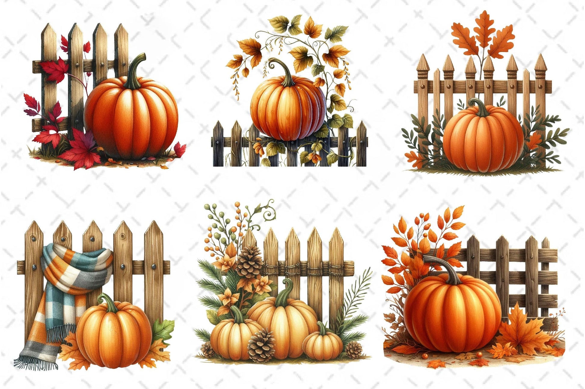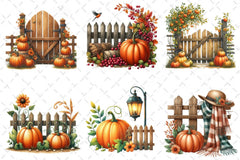 Fall Pumpkin Fence Clipart Bundle 3