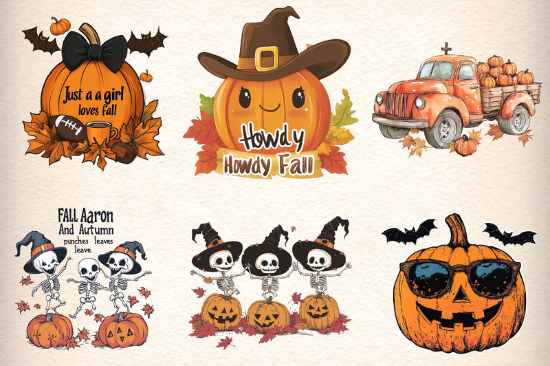 Fall Pumpkin & Halloween Pumpkin Quotes Clipart Bundle