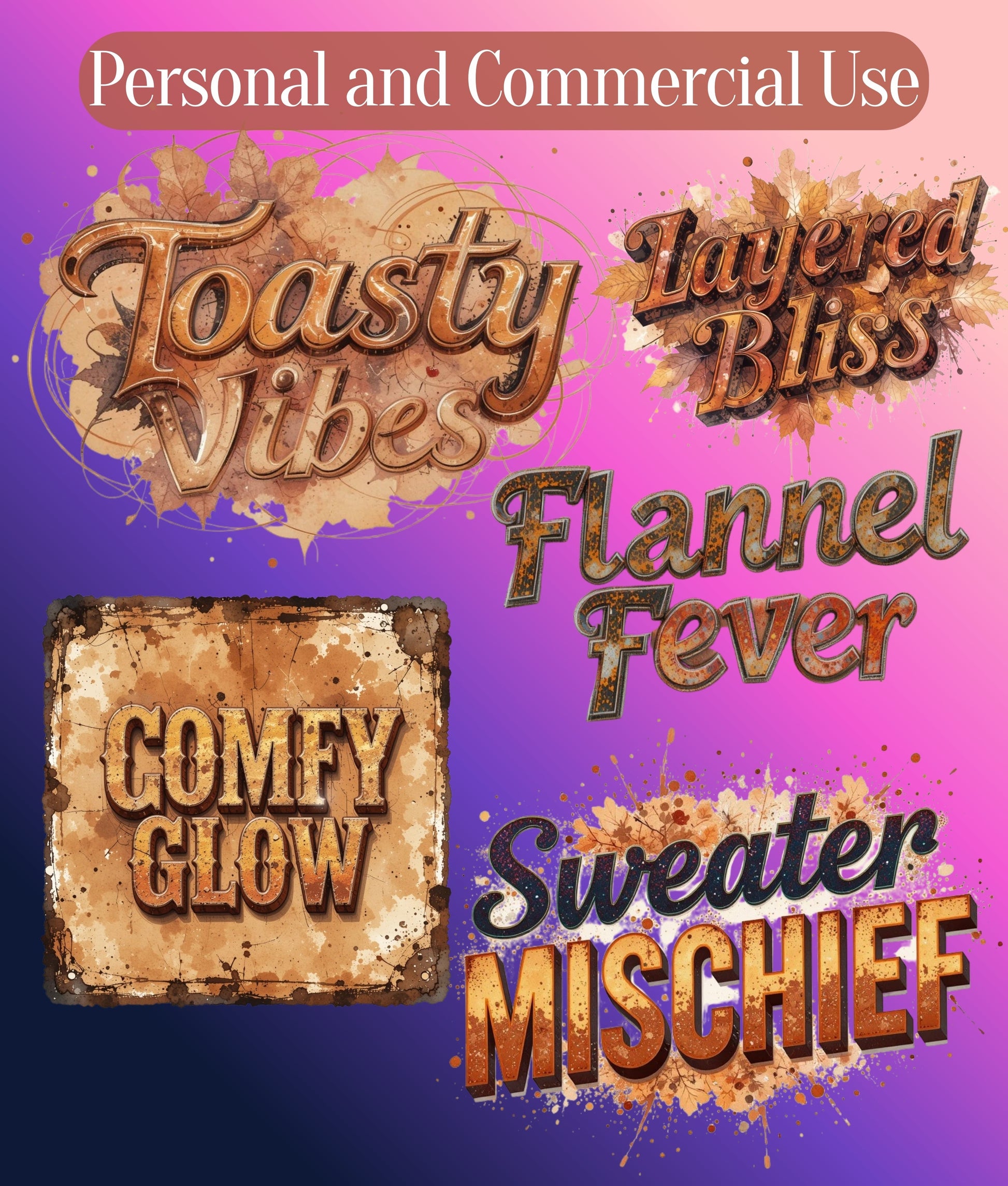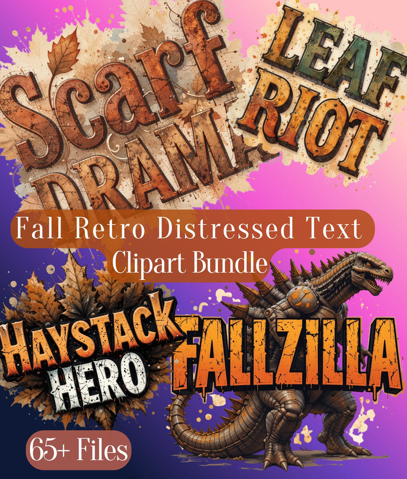 Transform your projects with the Fall Retro Distressed Text Clipart Bundle, featuring vintage-inspired designs perfect for autumn-themed crafts. Ideal for creating unique invitations, posters, and digital art, this bundle offers a nostalgic touch to any creative endeavor. Elevate your seasonal projects with these charming, distressed text elements, perfect for adding a retro flair to your designs.