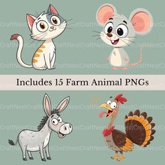 Farm with this Farm Animals Quirky 15 Clipart Bundle, featuring amusing farm animal designs, ideal for farming animal crafts.