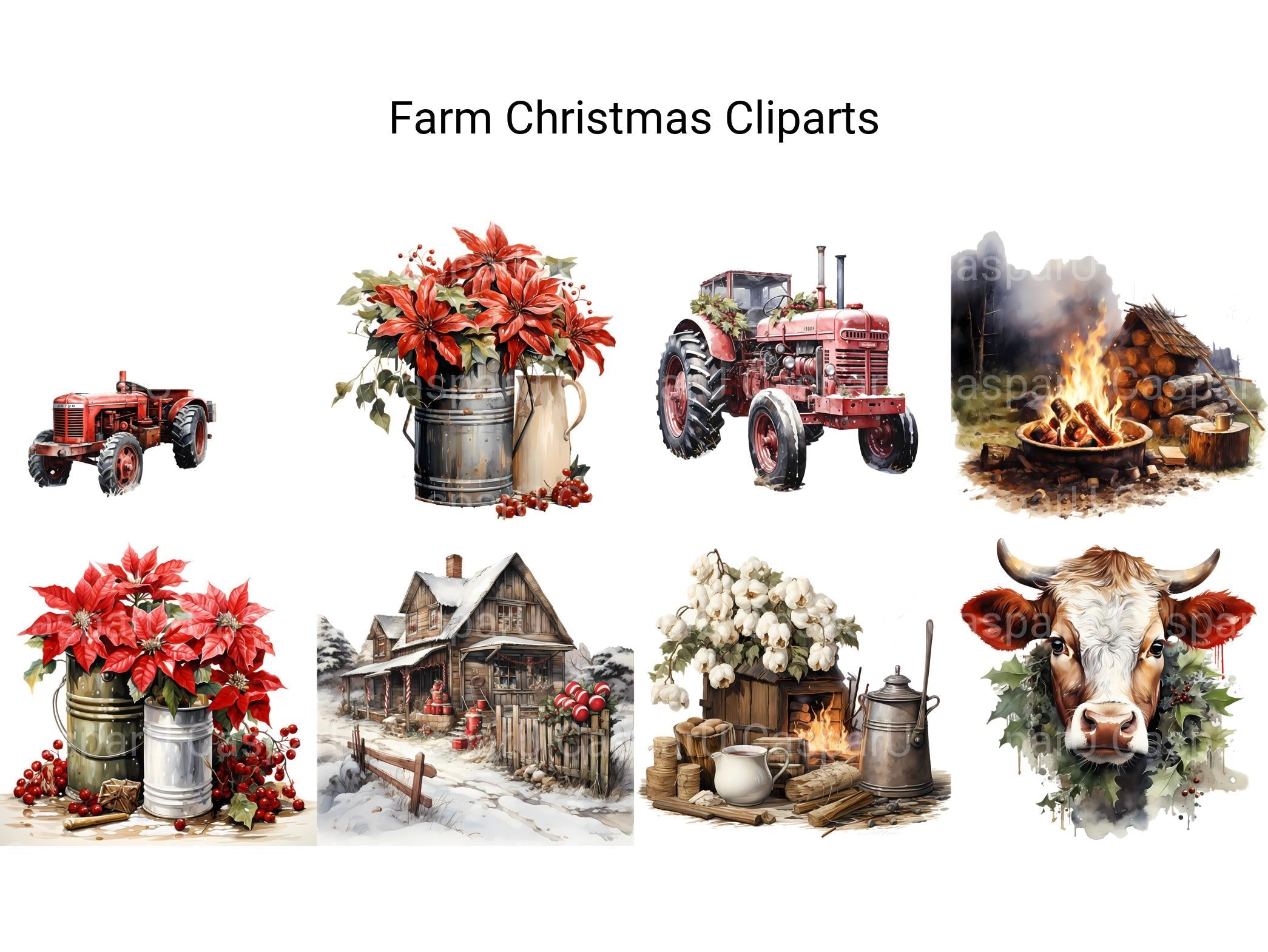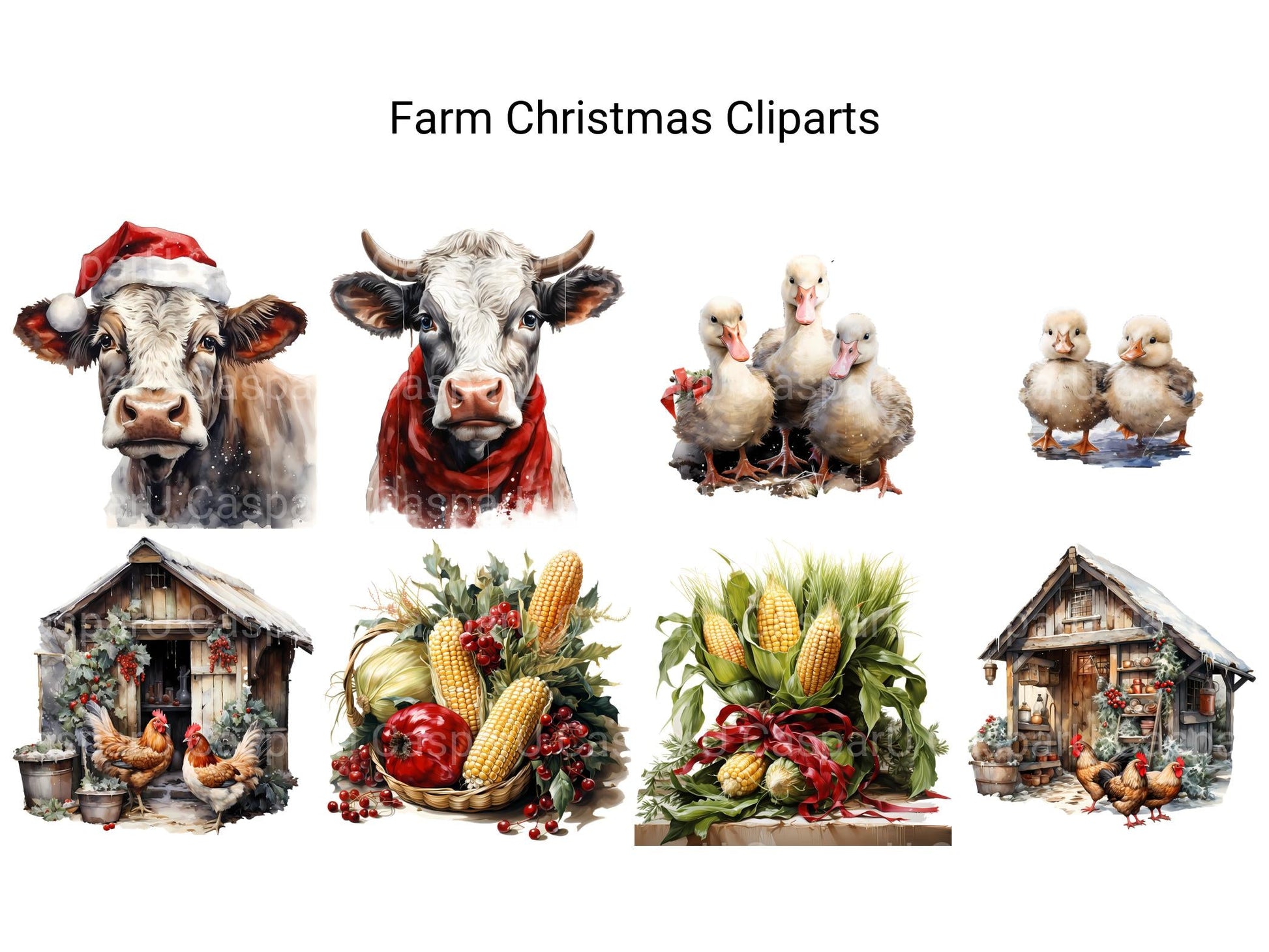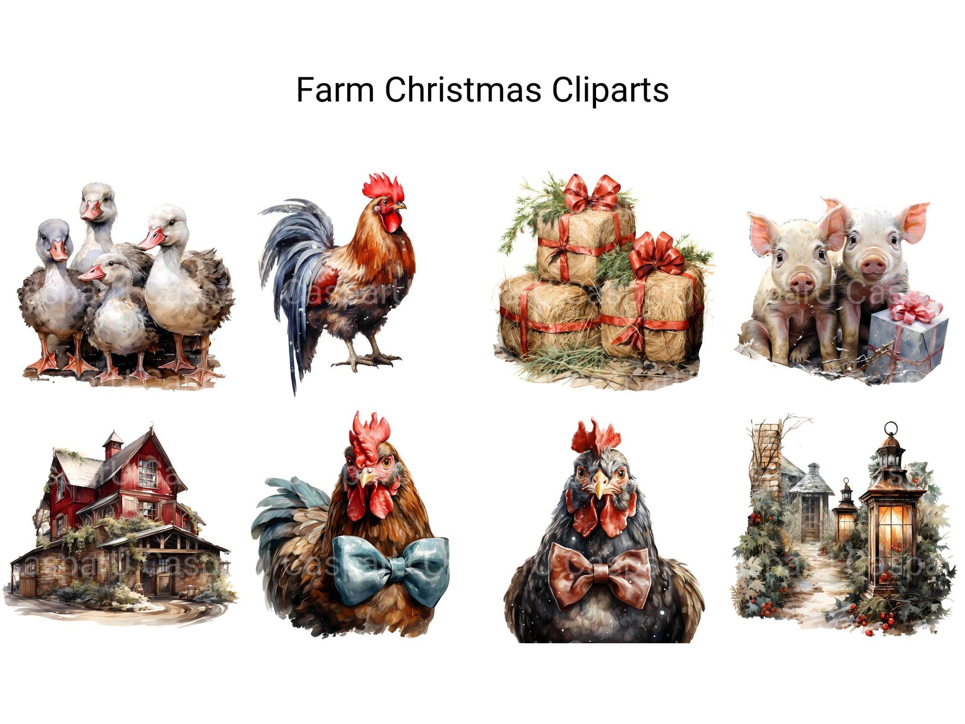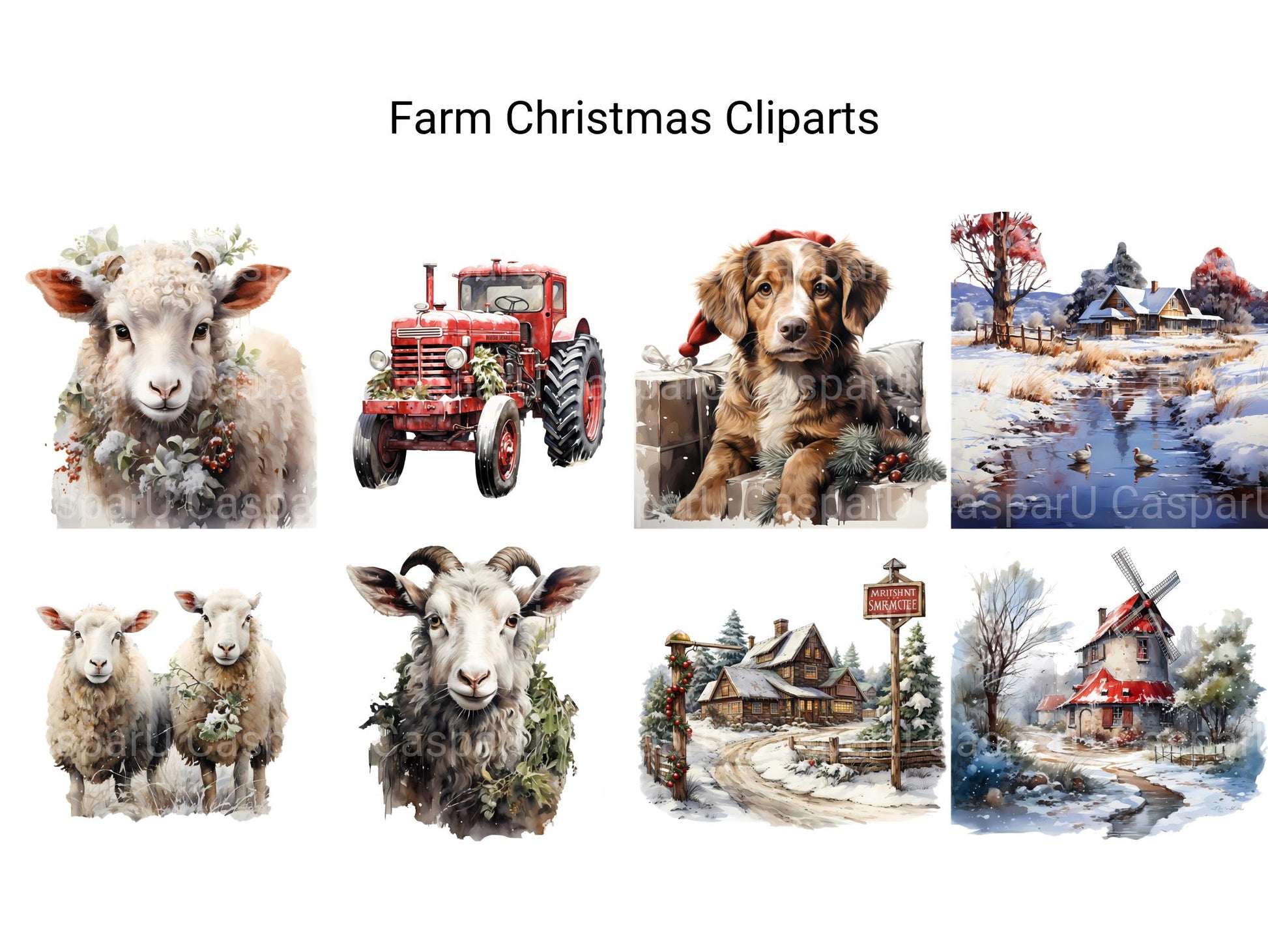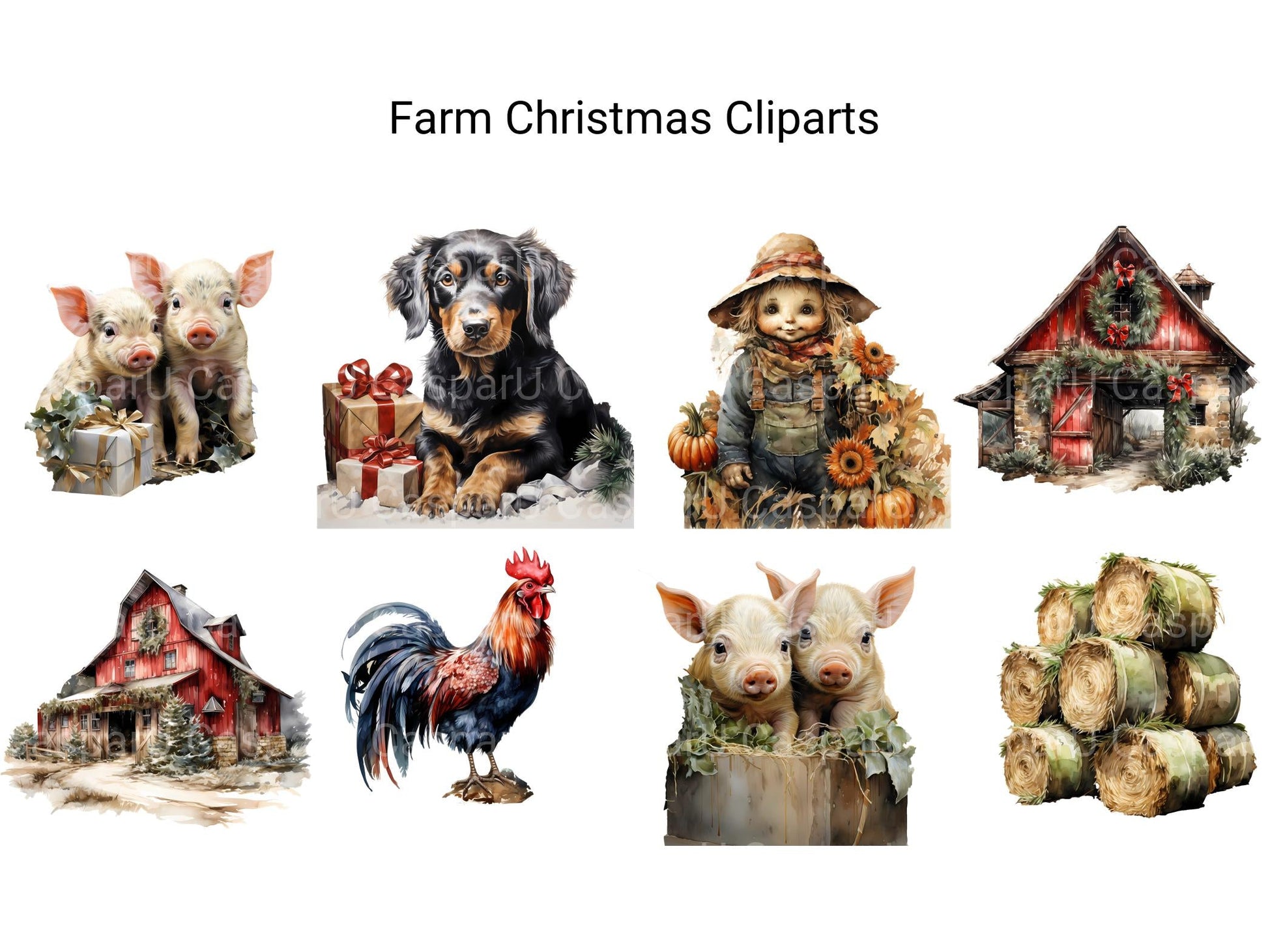 Embrace the rustic charm of the season with our Farm Christmas clip art. These digital illustrations showcase festive scenes from the countryside, featuring barns, animals, and fields adorned with holiday decorations, perfect for adding a touch of rural coziness to your Christmas designs, whether for cards, invitations, or agricultural promotions, celebrating the simplicity and beauty of farm life during the holidays.