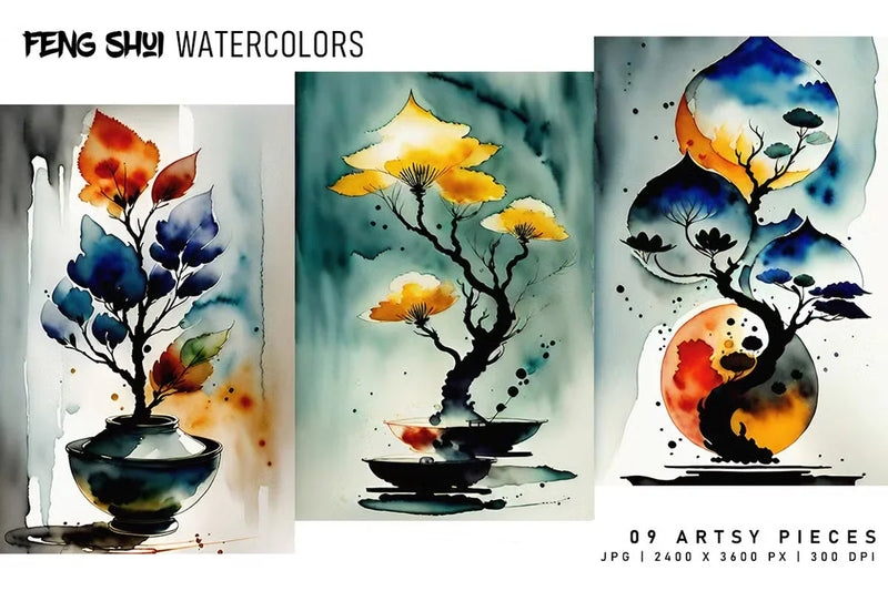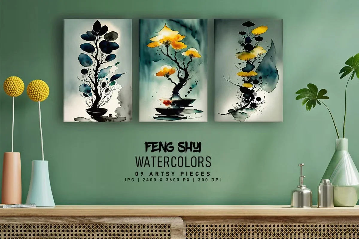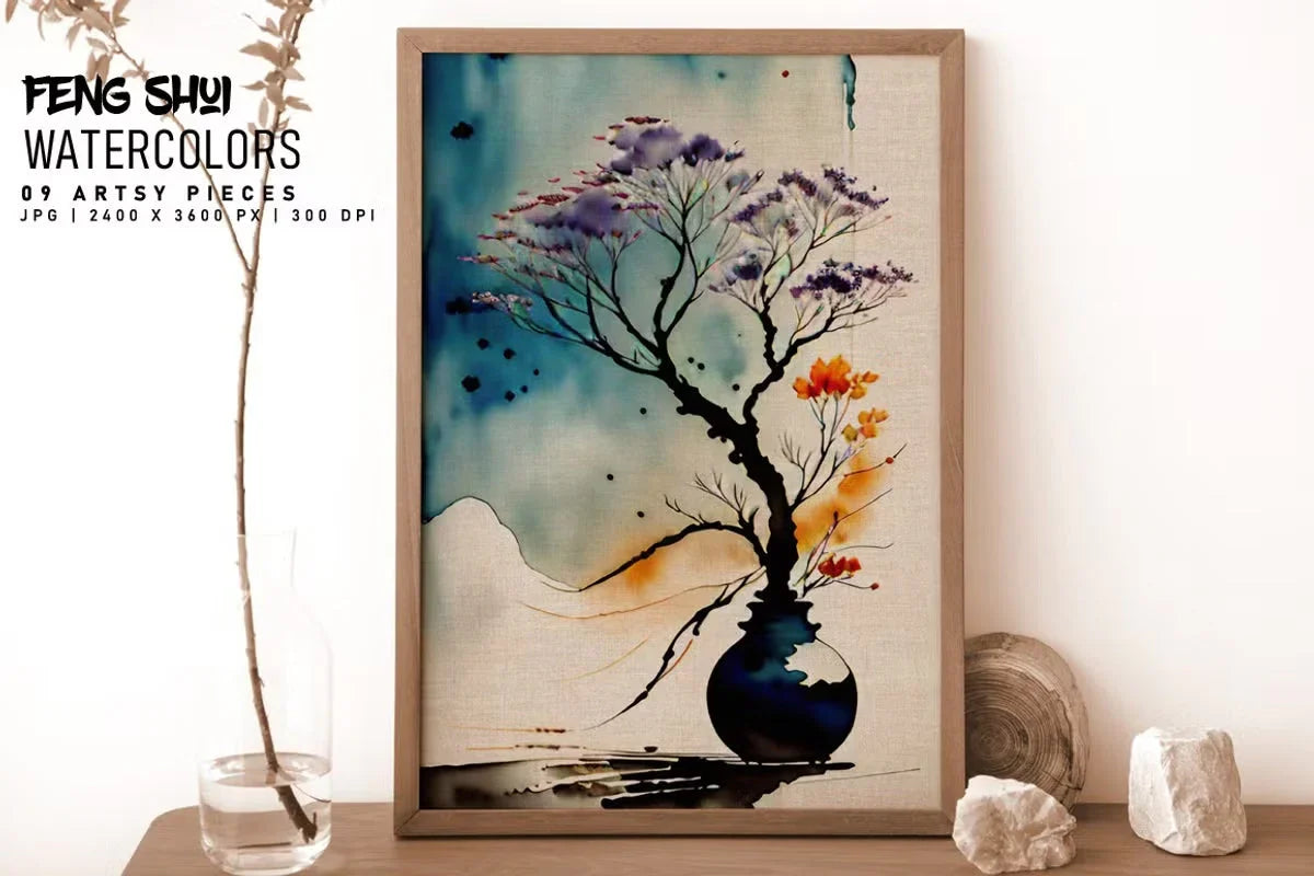 Enhance your space with Feng Shui Watercolors - Asian, featuring serene and harmonious designs that bring balance and tranquility to any room. Perfect for creating a peaceful atmosphere and promoting positive energy flow.
