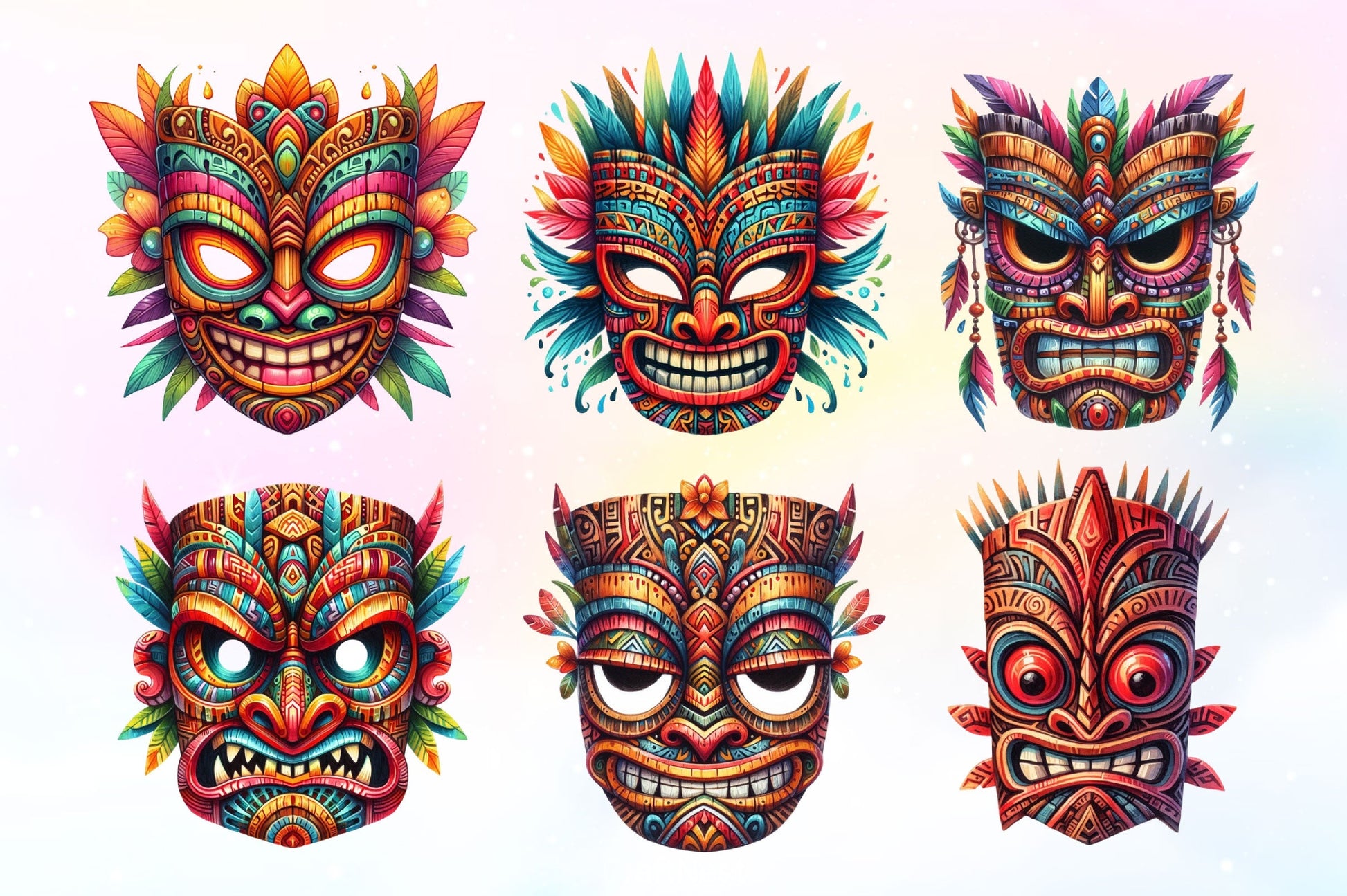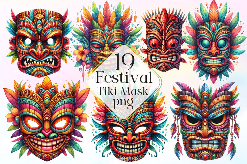 Tropical with this Festival Tiki Mask Clipart Bundle, featuring island mask designs, perfect for cultural celebration crafts.