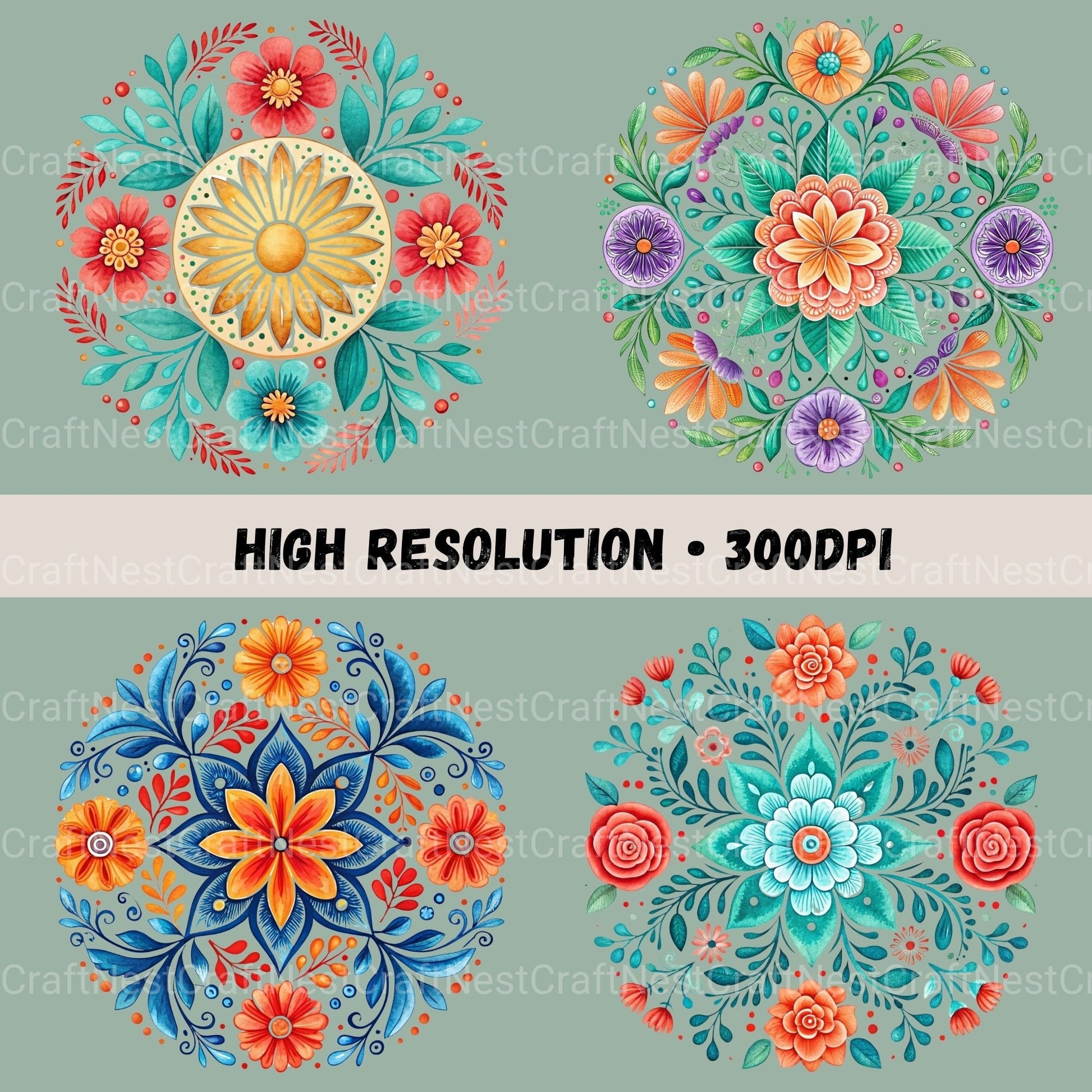 Celebrate with this Fiesta Flowers Circle 15 Clipart Bundle, featuring circular fiesta flower designs, ideal for civilization flower crafts.