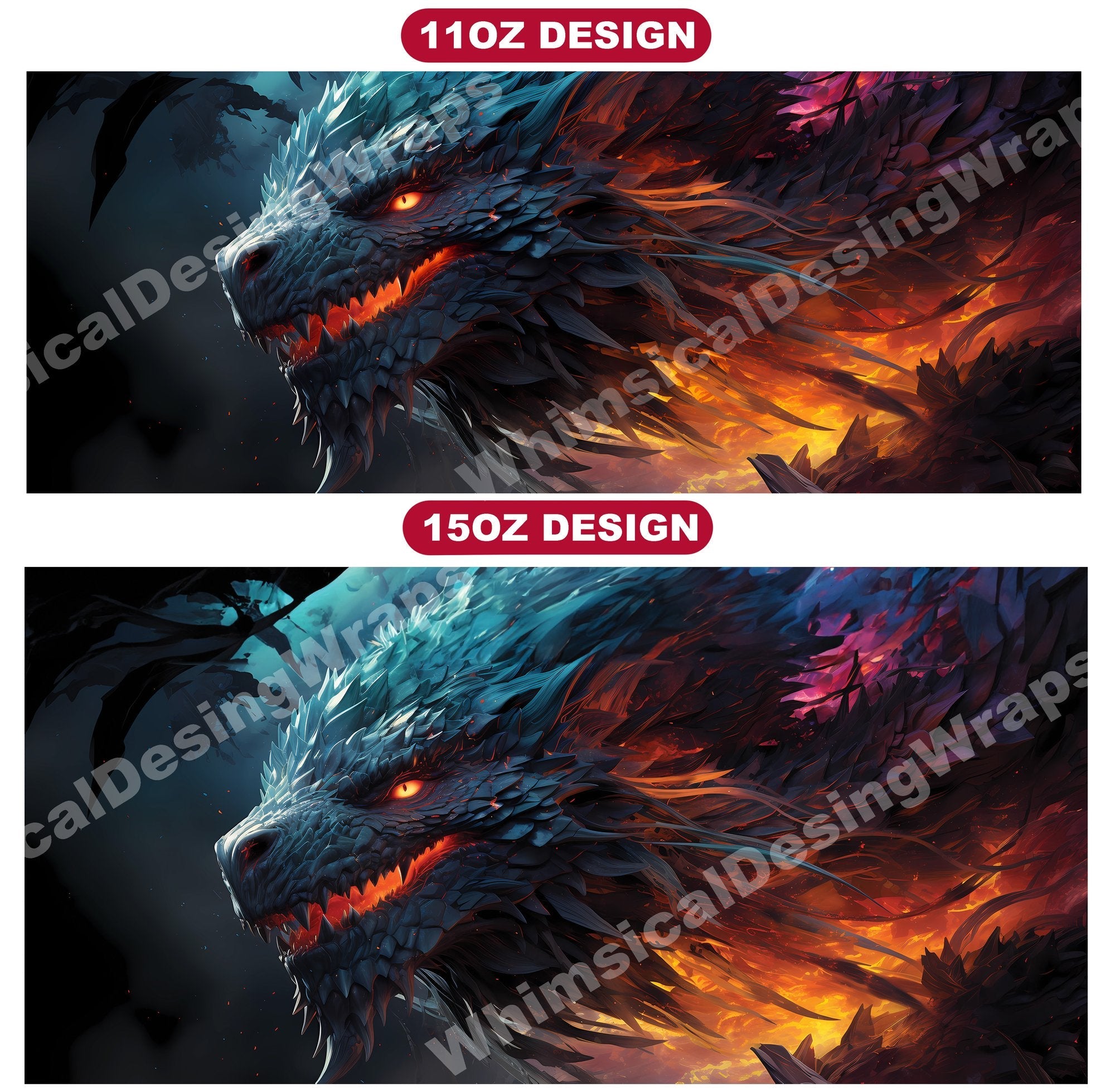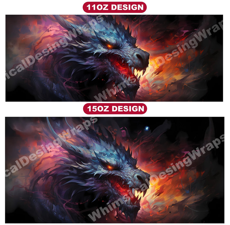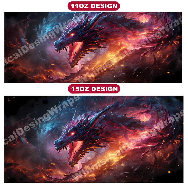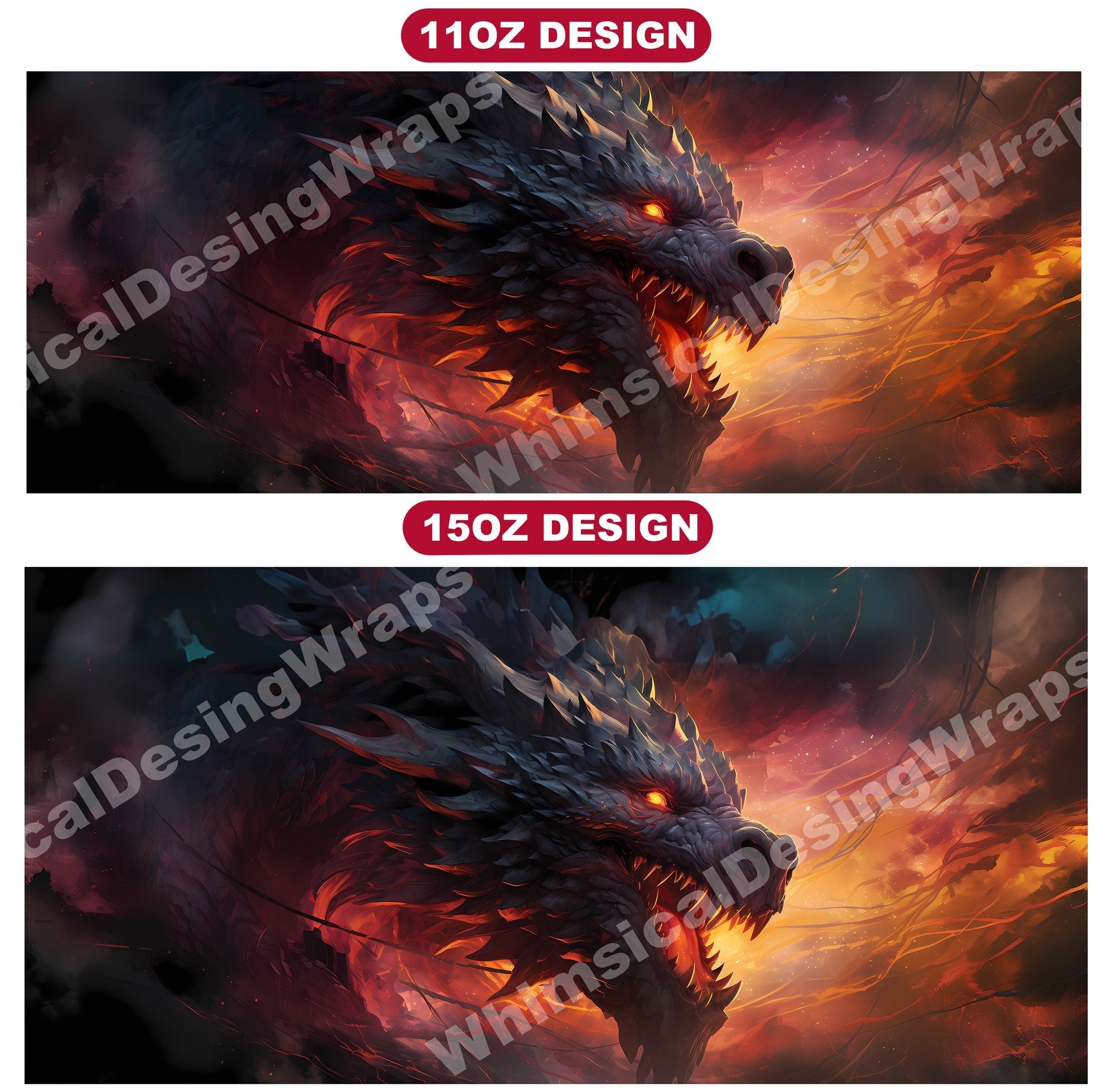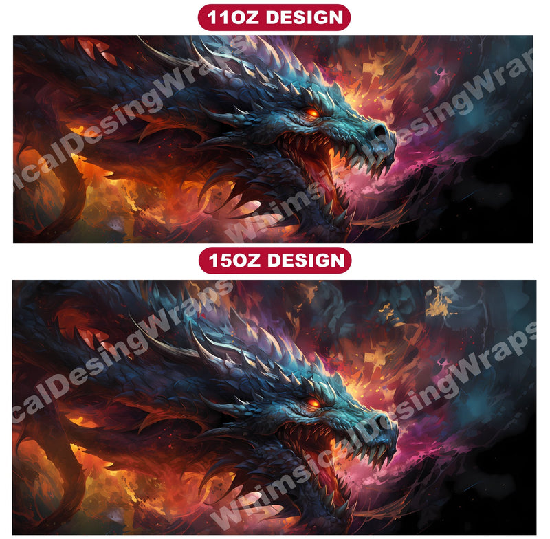 Ignite your imagination with our fire dragon digital mug wraps. These fiery designs showcase majestic dragons wreathed in flames, exuding power and intensity against a backdrop of glowing embers and smoldering landscapes, making them a bold statement piece for any dragon enthusiast's mug collection.