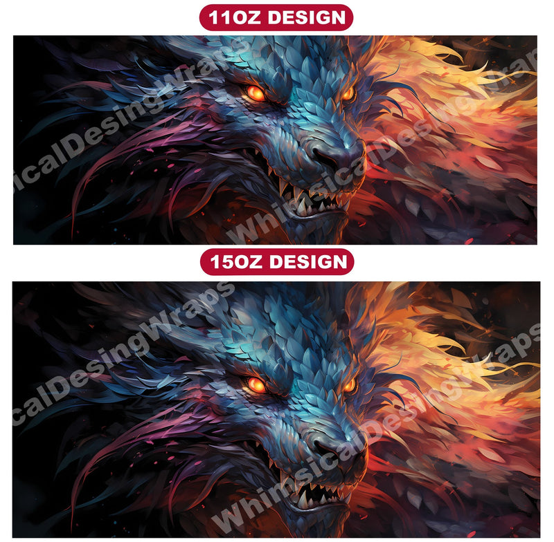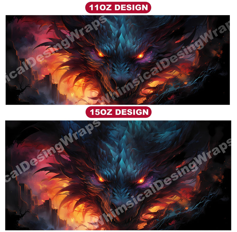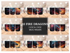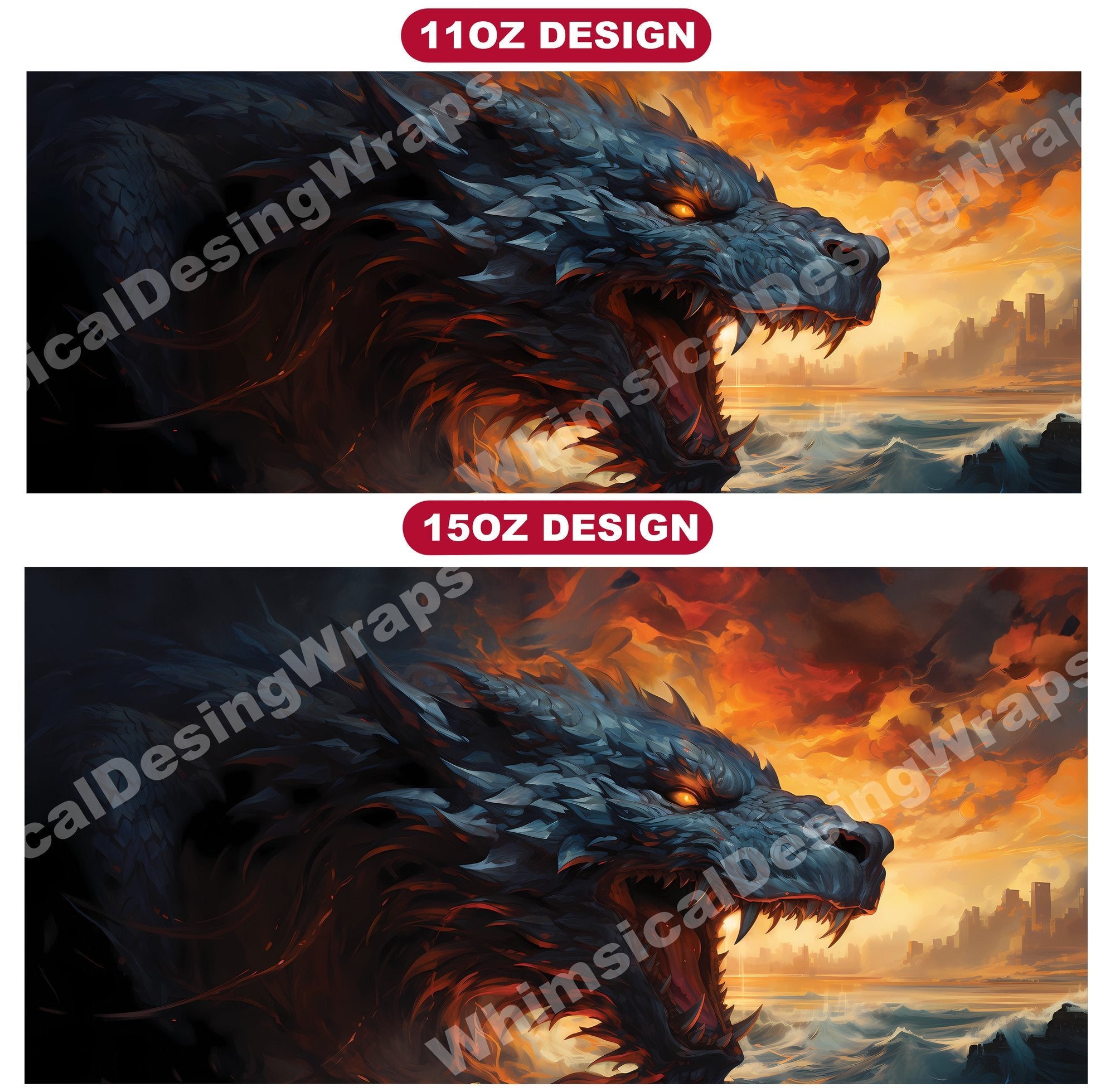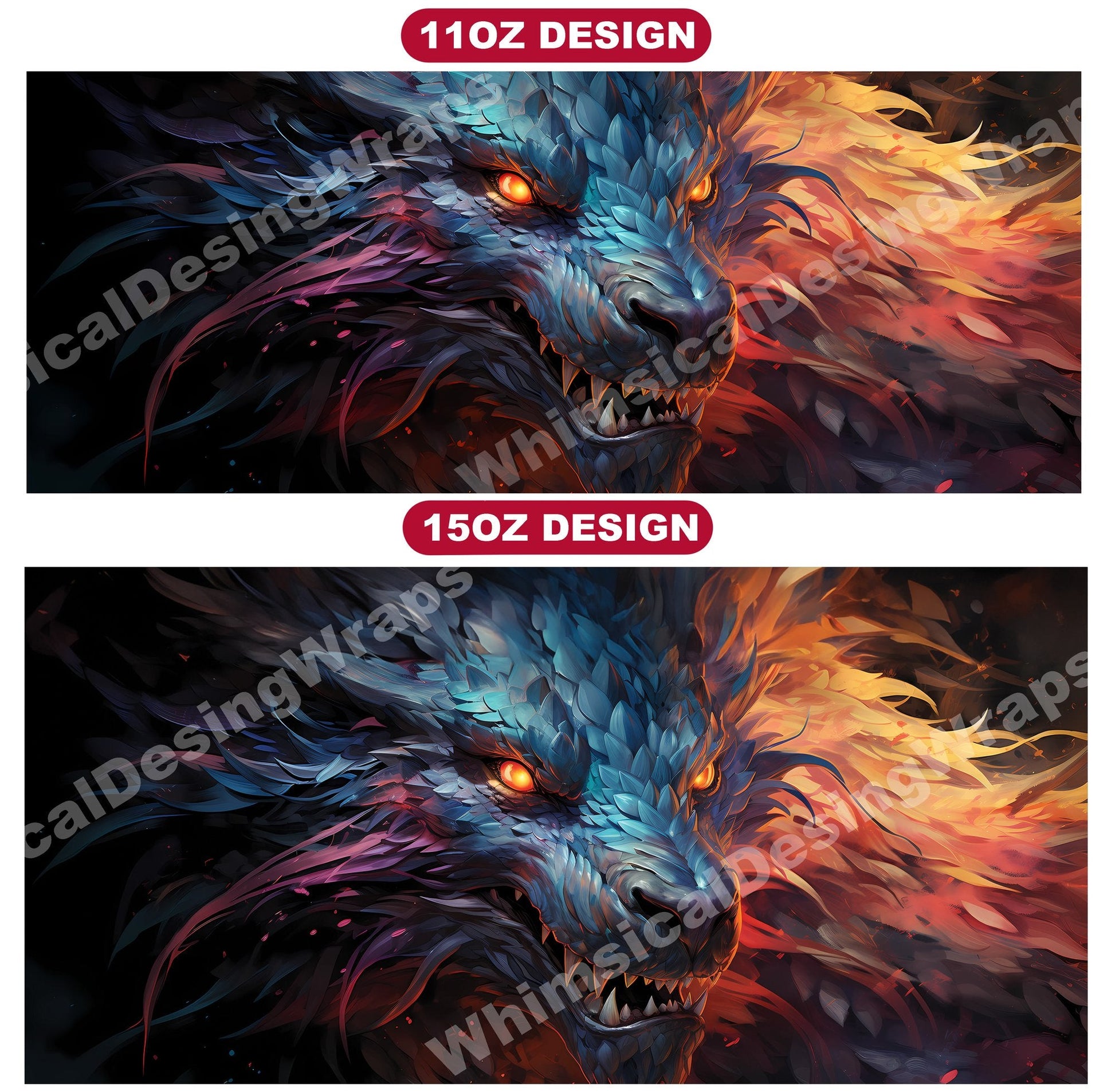 Ignite your imagination with our fire dragon digital mug wraps. These fiery designs showcase majestic dragons wreathed in flames, exuding power and intensity against a backdrop of glowing embers and smoldering landscapes, making them a bold statement piece for any dragon enthusiast's mug collection.