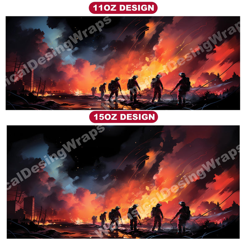 Honor the bravery of firefighters with our firefighter-themed digital mug wraps. These heroic designs pay tribute to the courageous men and women who risk their lives to keep our communities safe, making them a meaningful addition to your mug collection.