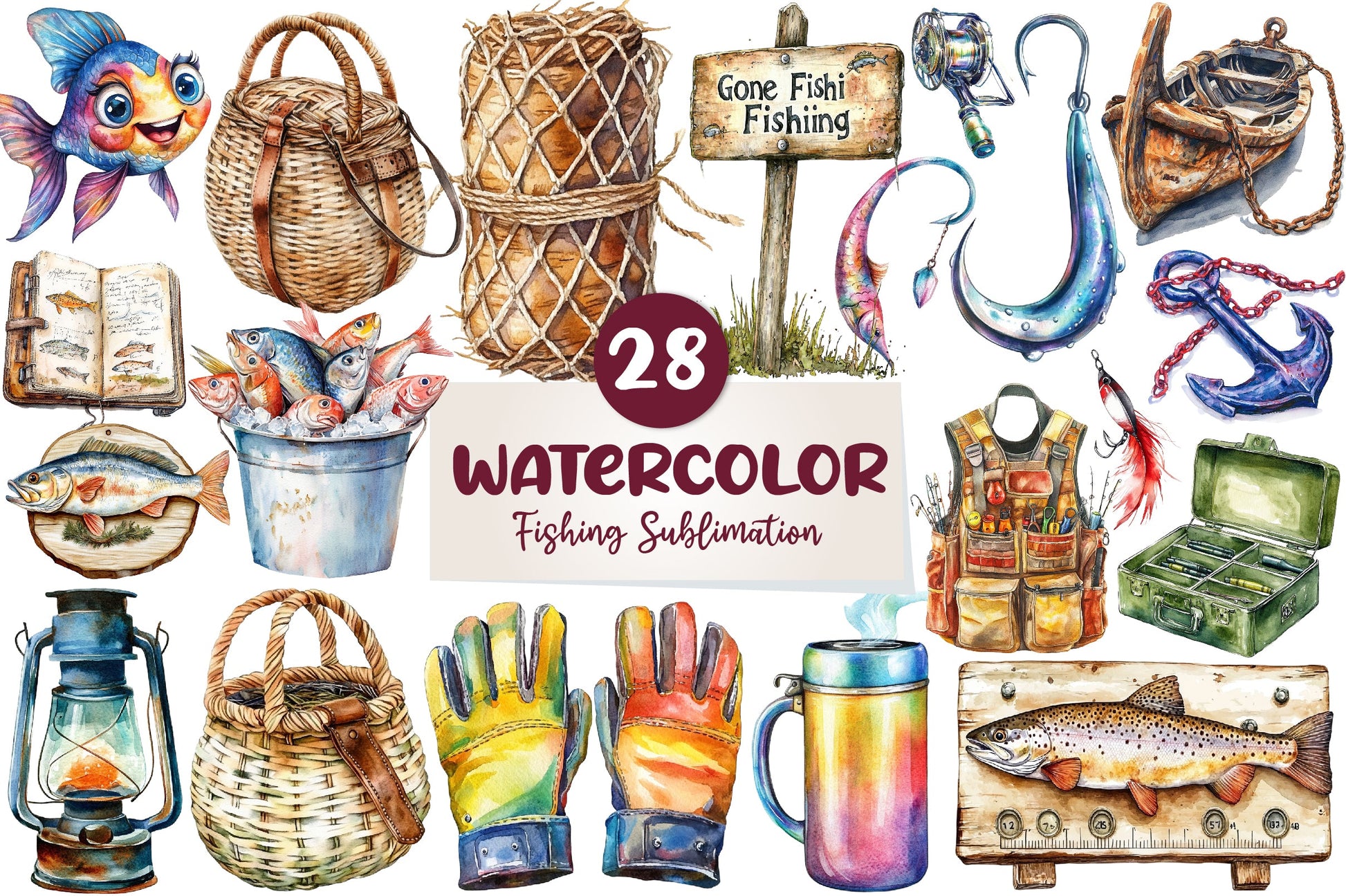 Cast with this Fishing Clipart Bundle, featuring angling designs, ideal for outdoor hobby crafts.