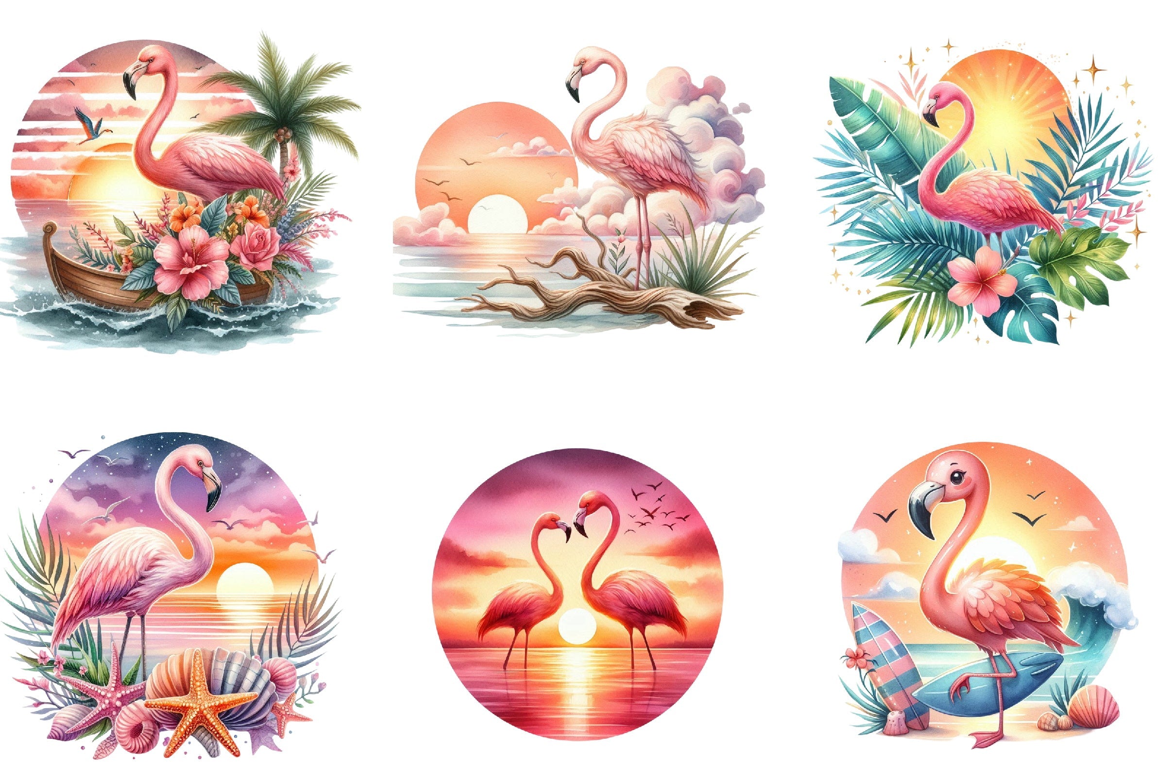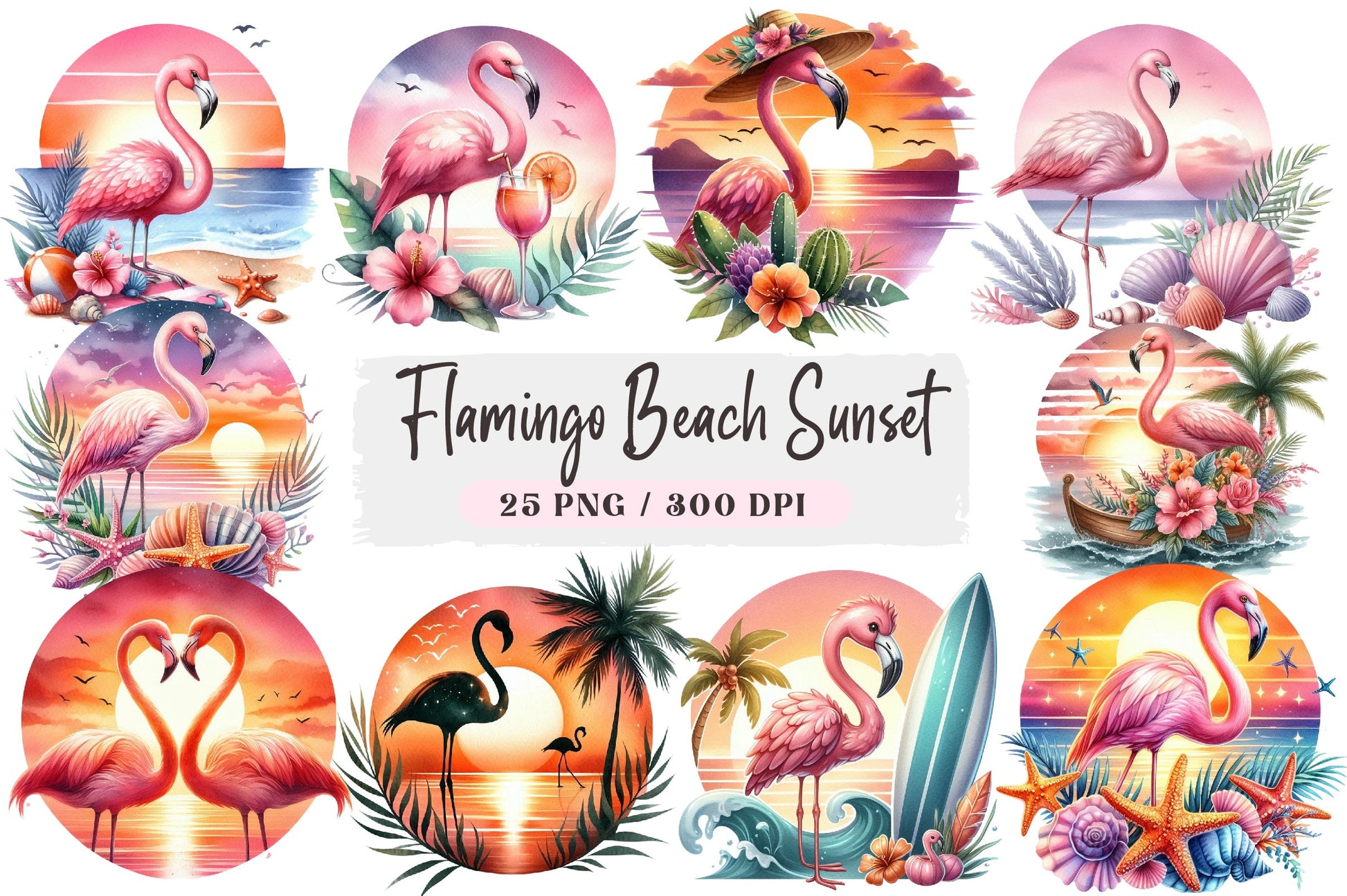 Capture the essence of paradise with our Flamingo Beach Sunset Clipart Bundle. Perfect for tropical-themed projects, this vibrant collection features stunning sunset hues and elegant flamingos, ideal for invitations, scrapbooking, and more. Transform your creative ideas into reality with these high-quality, versatile designs that bring a touch of exotic beauty to any craft.
