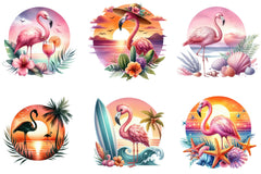 Flamingo Beach Sunset Clipart Bundle