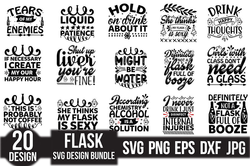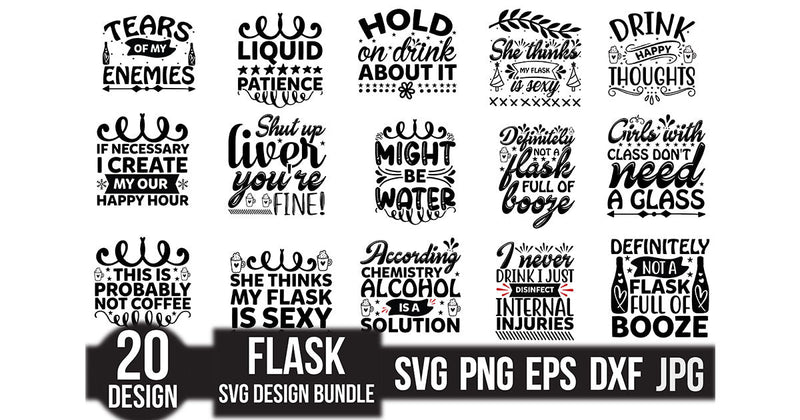 Sip with this Flask SVG Bundle, featuring drinking designs, perfect for beverage crafts.