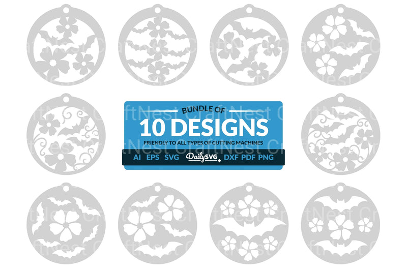 Unleash your creativity with the Floral Bats Halloween Clipart SVG Bundle, featuring intricately designed bat motifs adorned with floral elements, perfect for spooky yet elegant Halloween crafts and decorations.