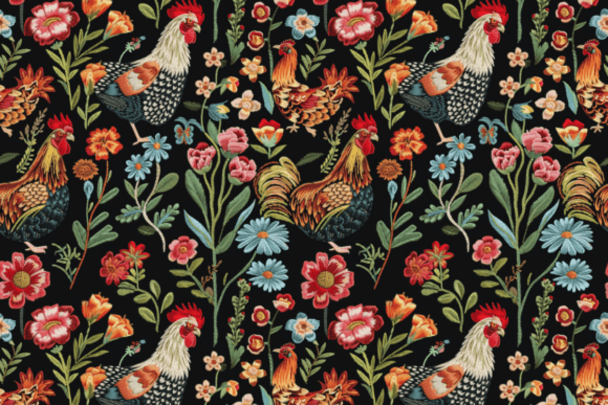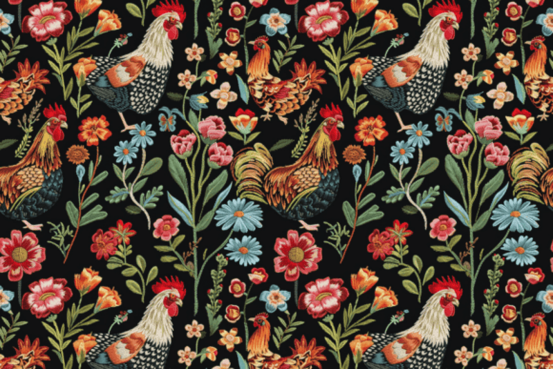 Floral Chicken Seamless Digital Paper