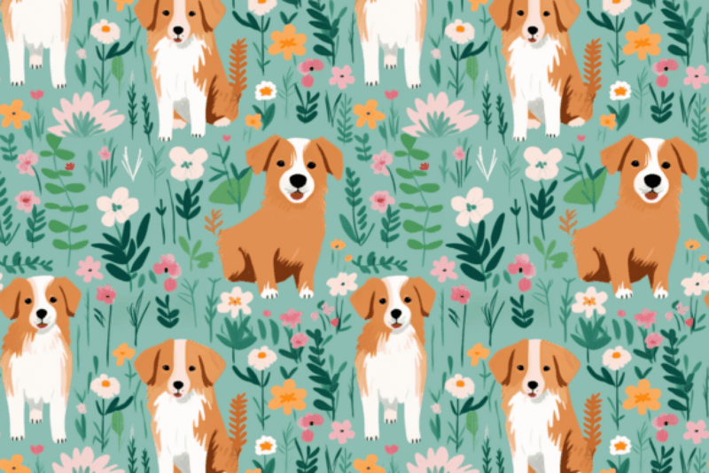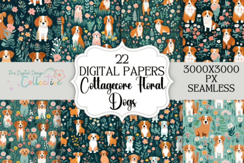 Enhance your creative projects with the Floral Dogs Seamless Patterns Bundle, featuring charming dog designs adorned with vibrant floral motifs, perfect for unique crafts and stylish decor.