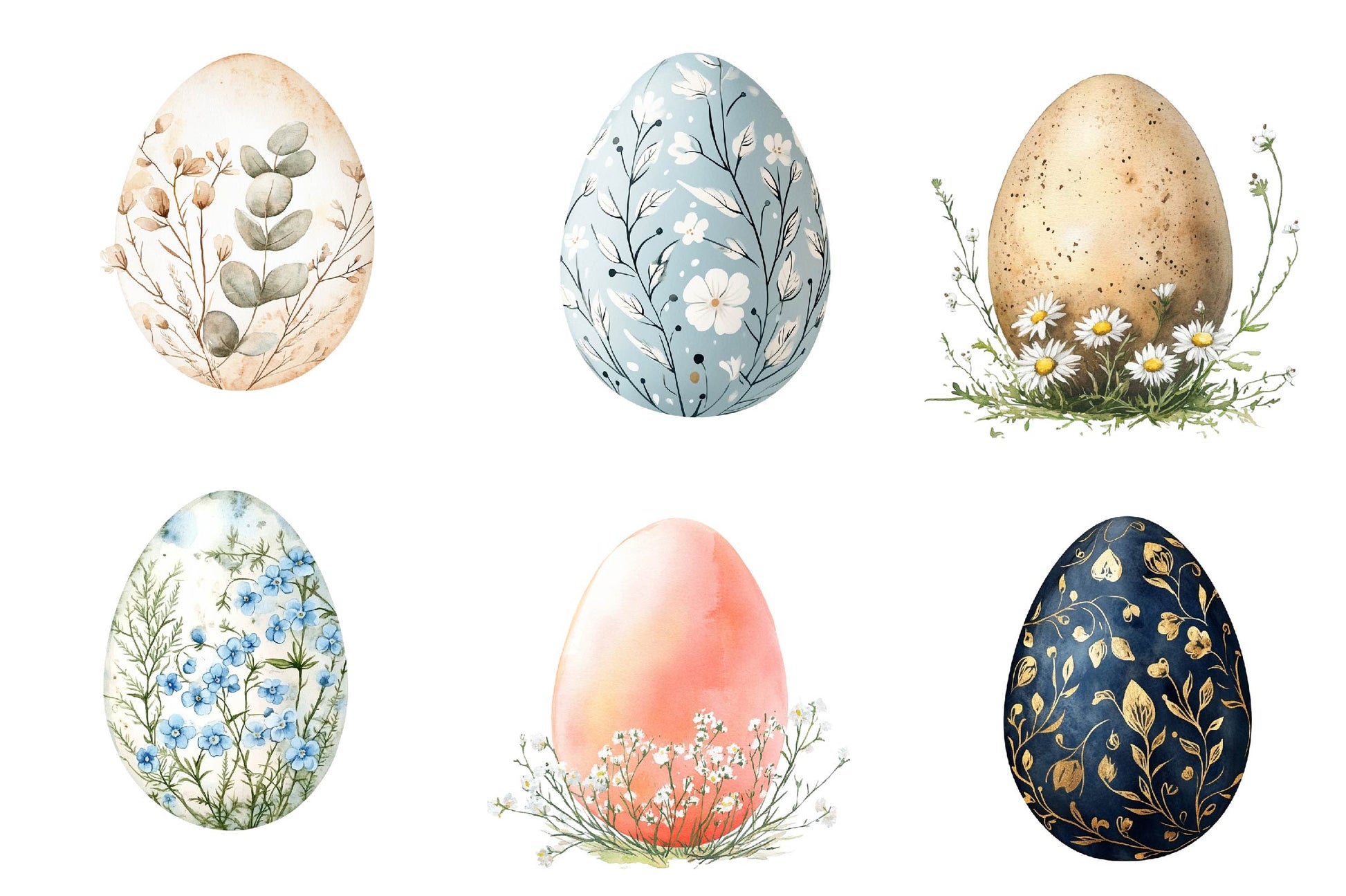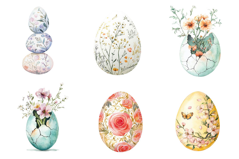 Bloom with this Floral Easter Egg Clipart Bundle, featuring flower-decorated egg designs, perfect for botanical Easter crafts.