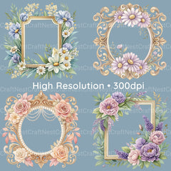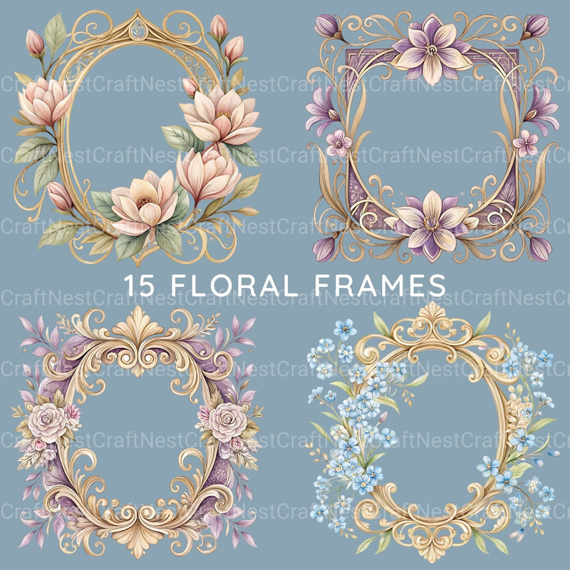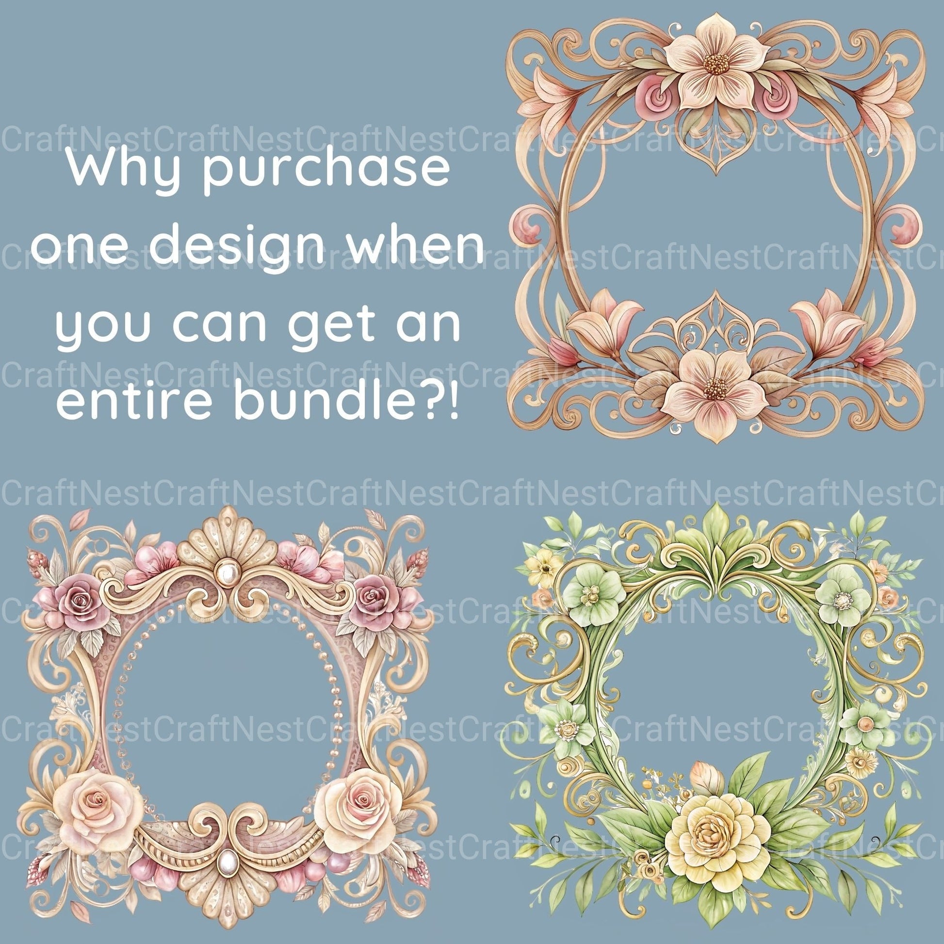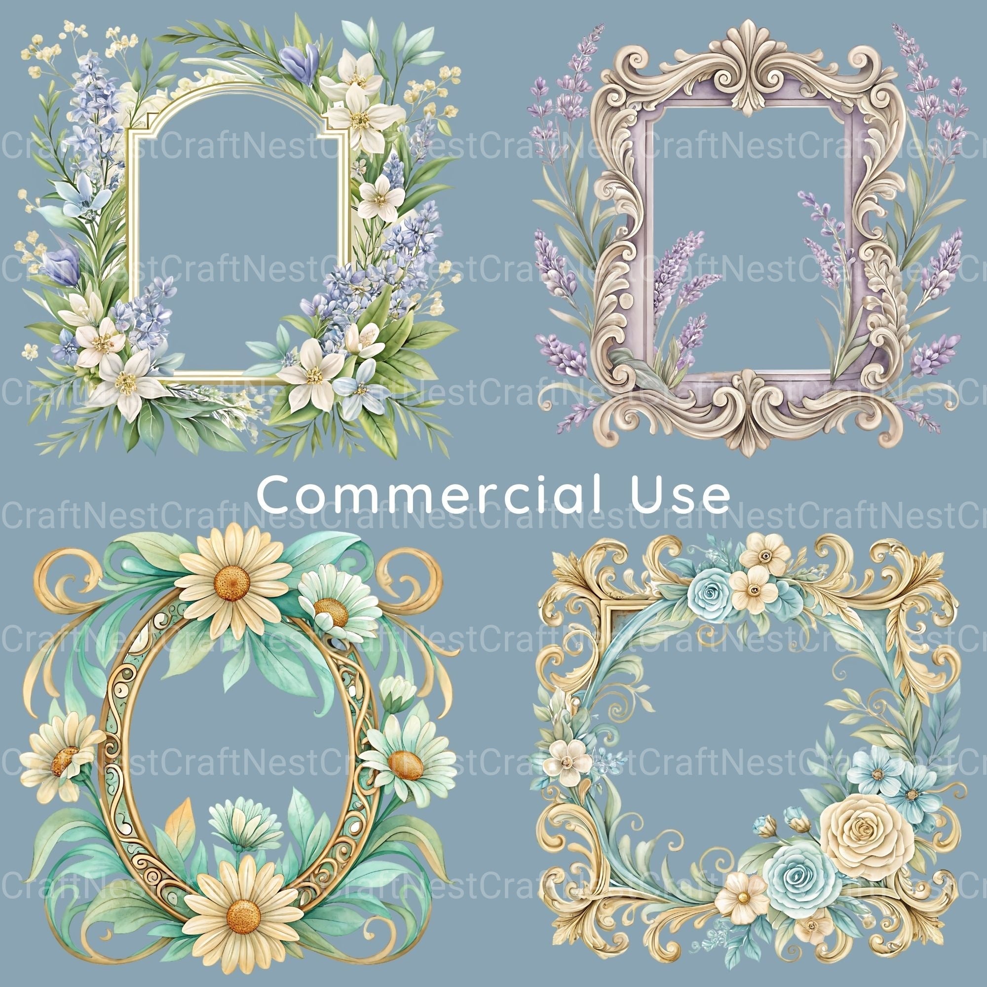Border with this Floral Frames 15 Clipart Bundle, featuring decorative flower frame designs, perfect for floral crafting crafts.