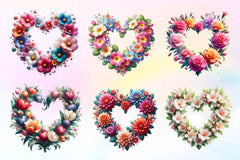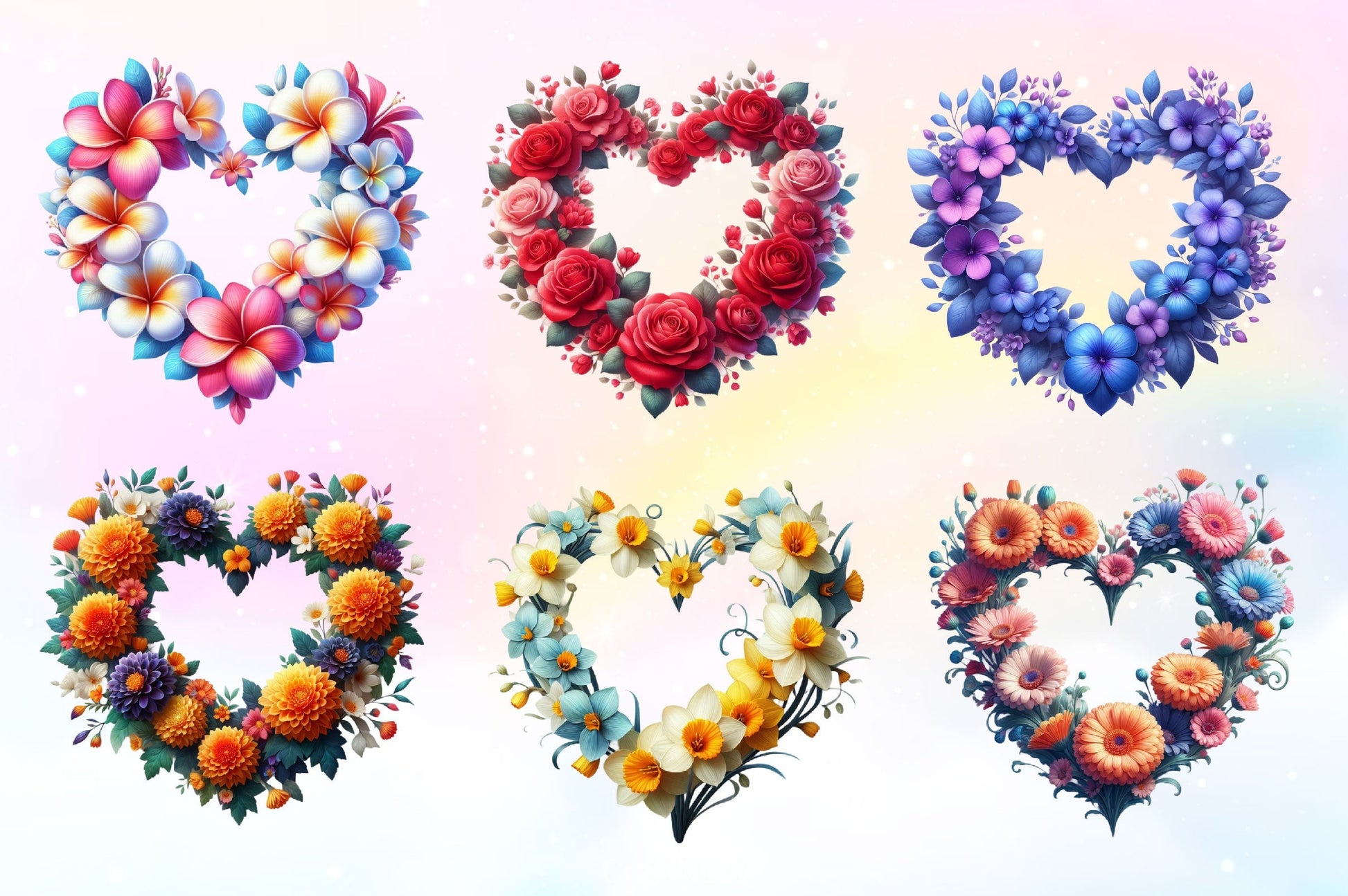 Circle with this Floral Heart Wreath Clipart Bundle, featuring romantic flower ring designs, perfect for valentine garden crafts.