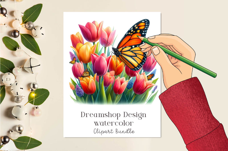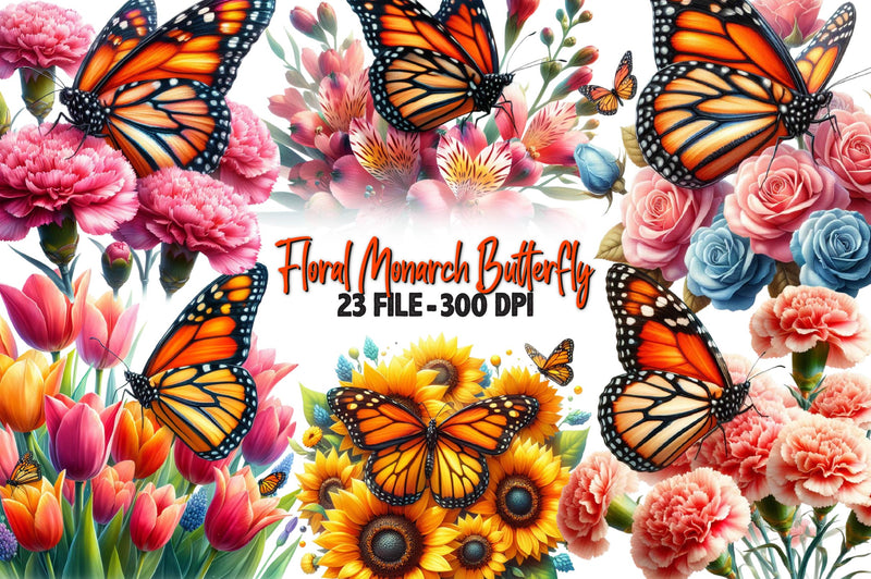 Floral Monarch Butterfly Clipart Bundle
